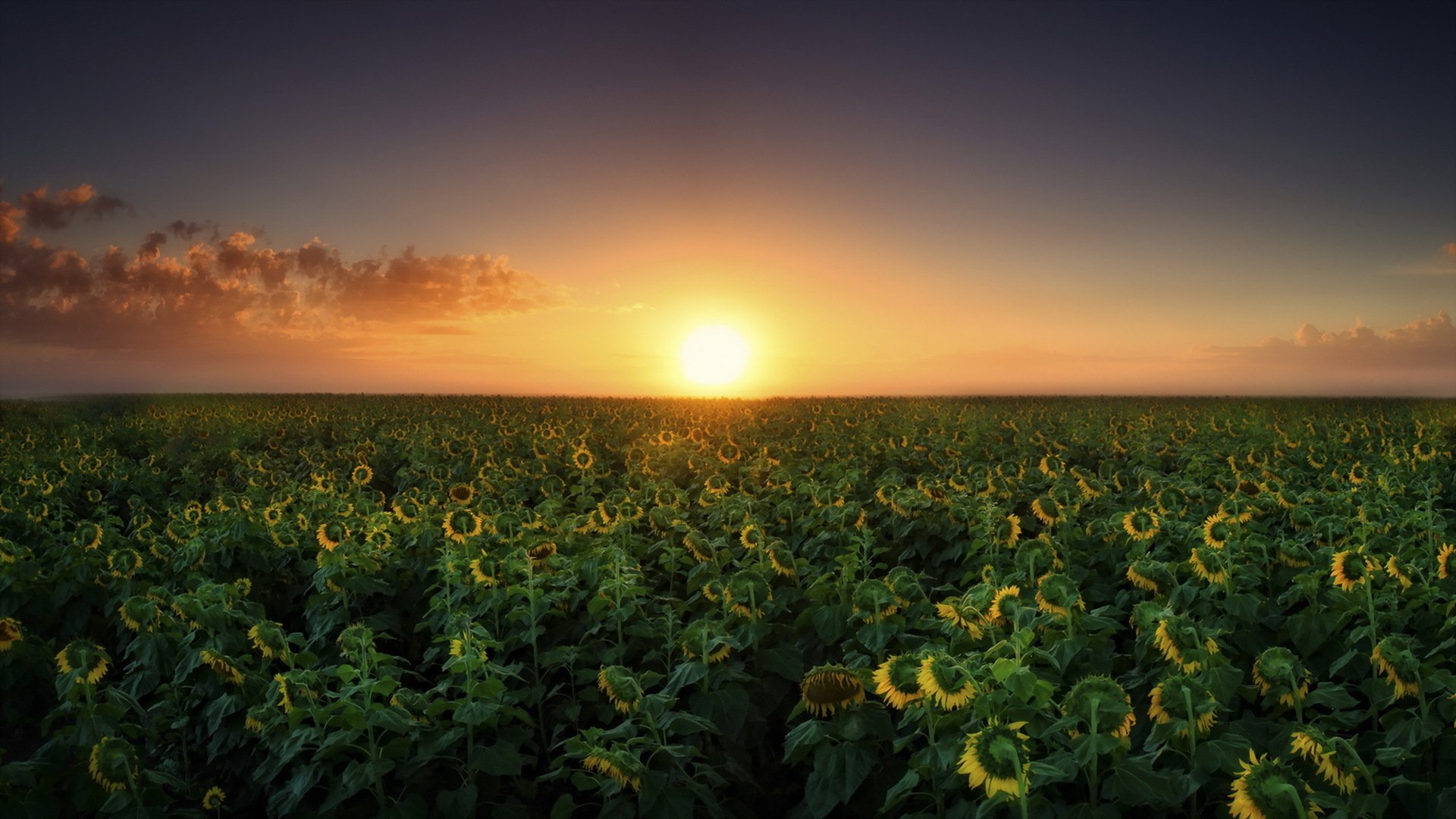 Tagi:zachód słońca, pole, słoneczniki, krajobraz