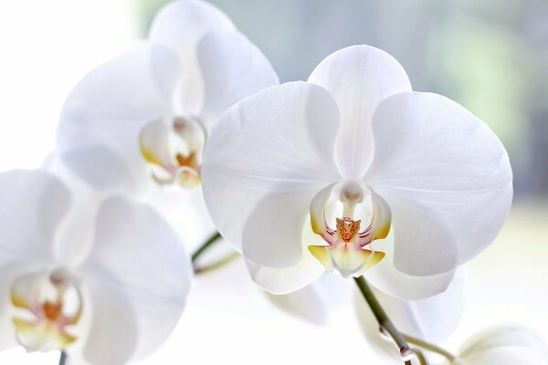 Białe Kwitnące storczyki na jasnym tle