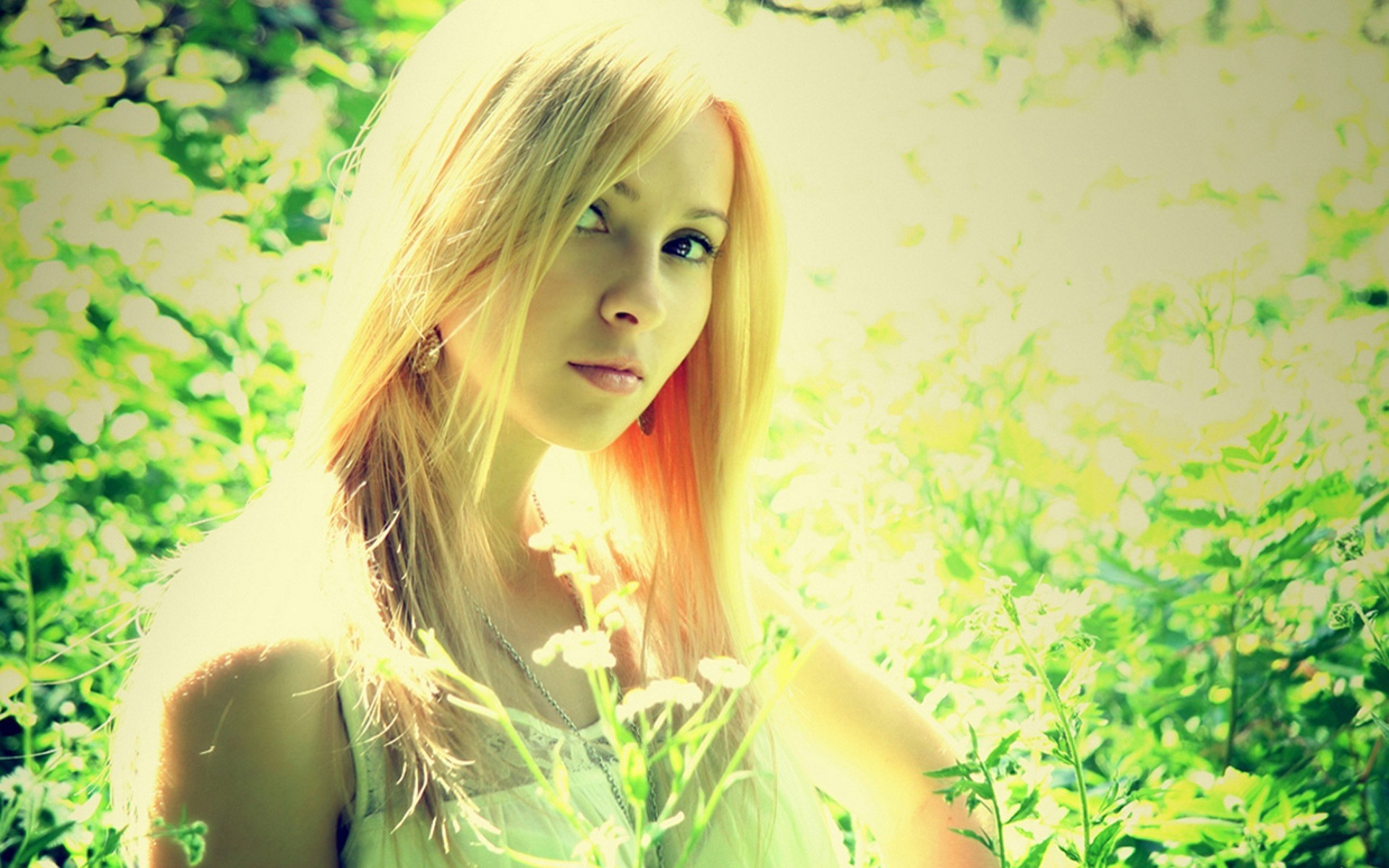 Blondynka o tajemniczym spojrzeniu, oświetlona słońcem