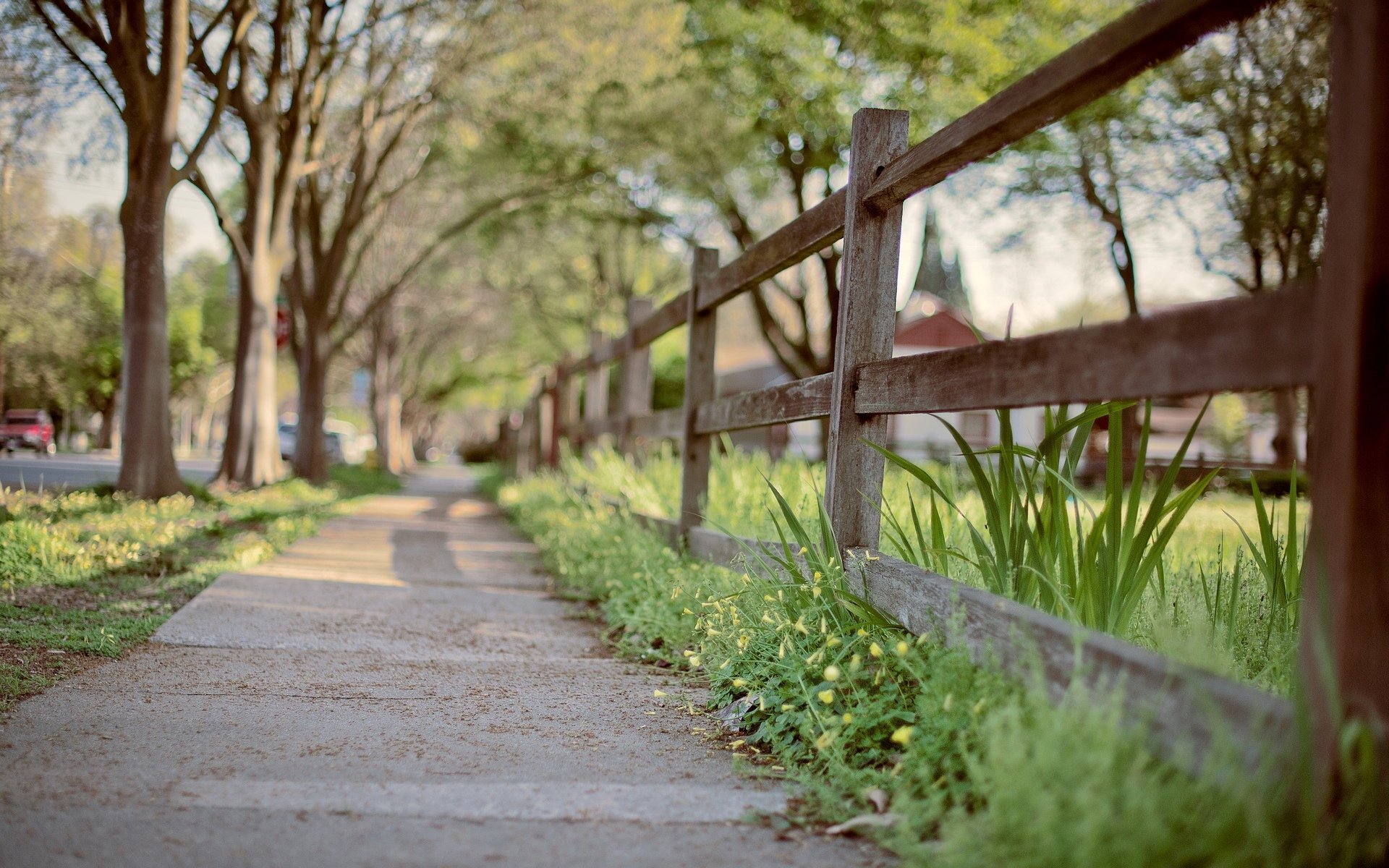 Tapety pełnoekranowe zielone liście, trawa, ogrodzenieTapety pełnoekranowe zielone liście, trawa, ogrodzenie