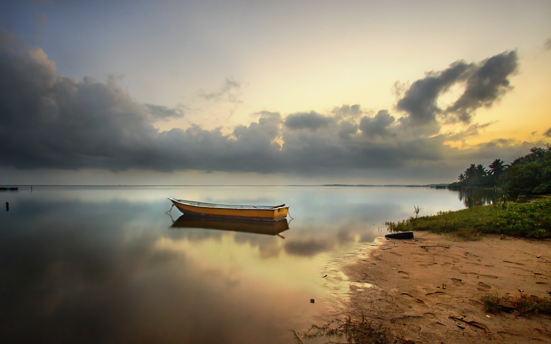 Piaszczysty brzeg. Odbicie w jeziorze chmur