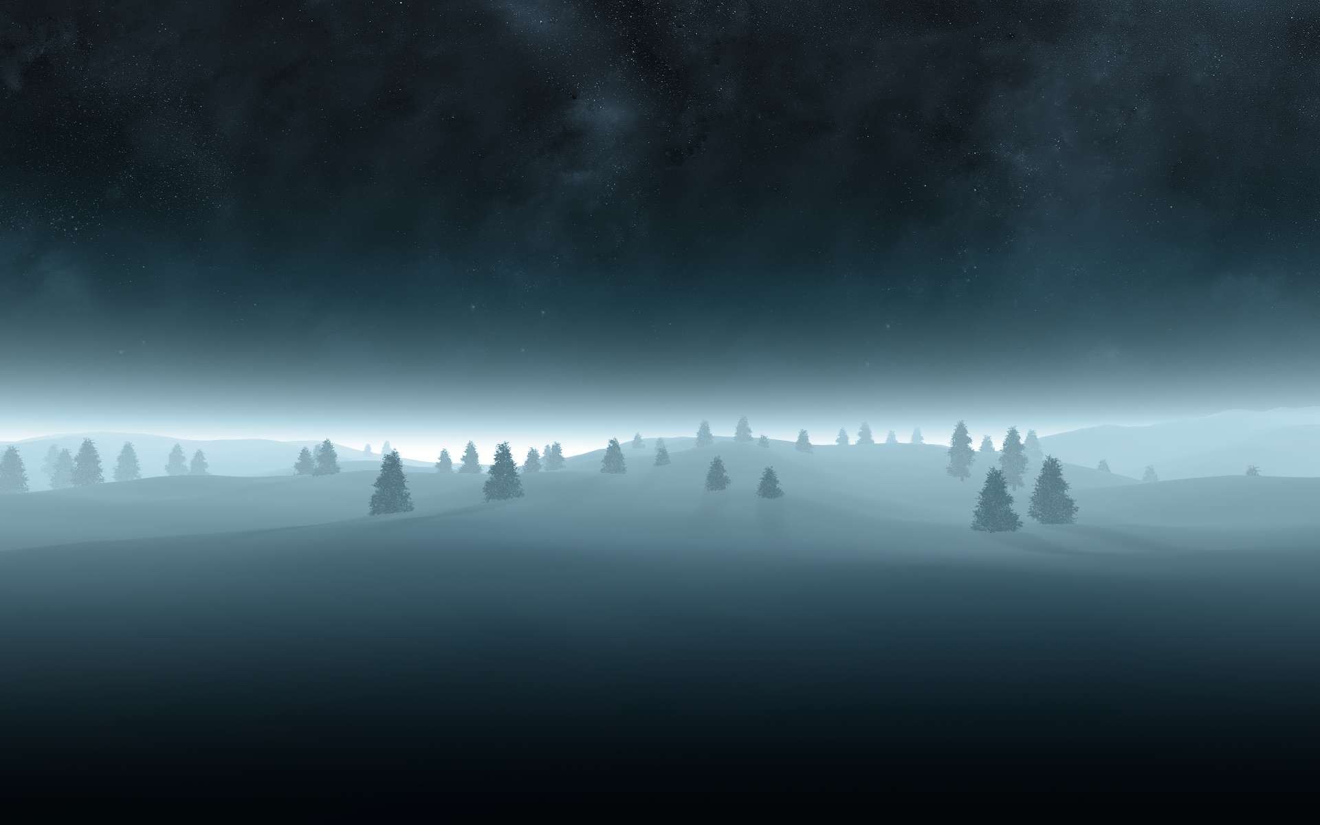 Ciemna noc i tylko jedli w śniegu