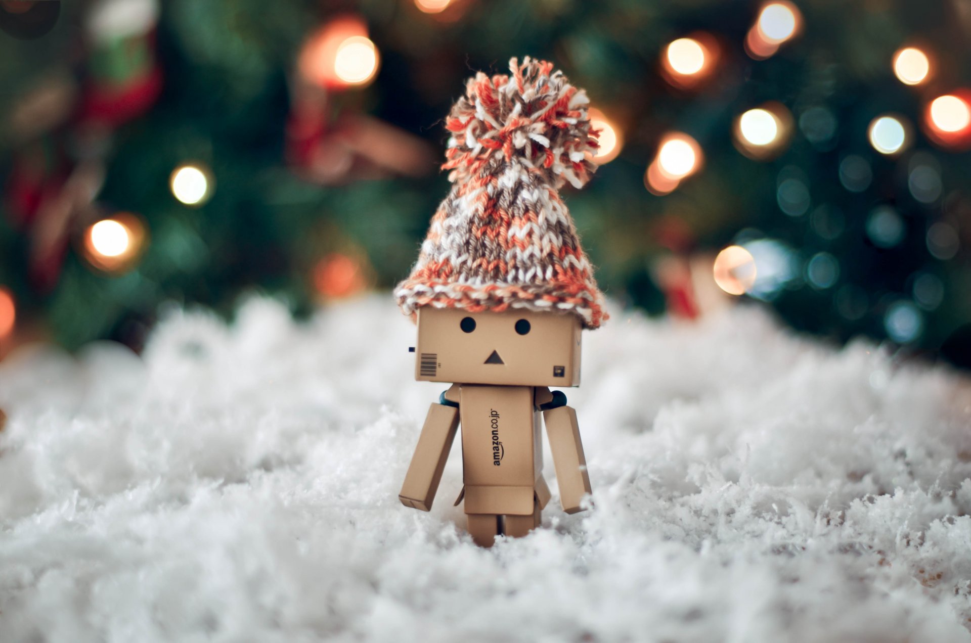 Dziewczyna o niebieskich oczach w białym swetrze i czapce