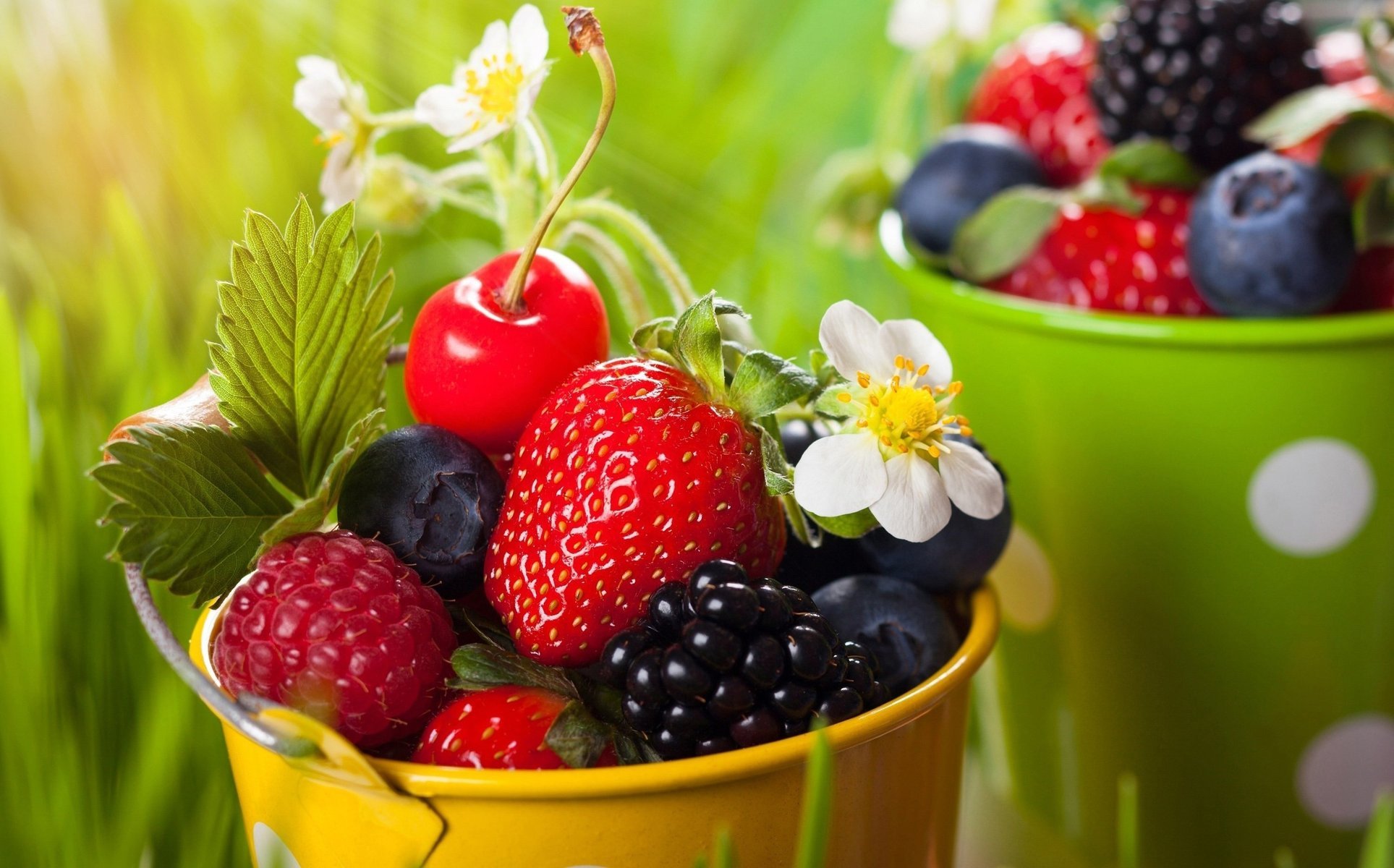 Jagody w kolorowych wiaderkach