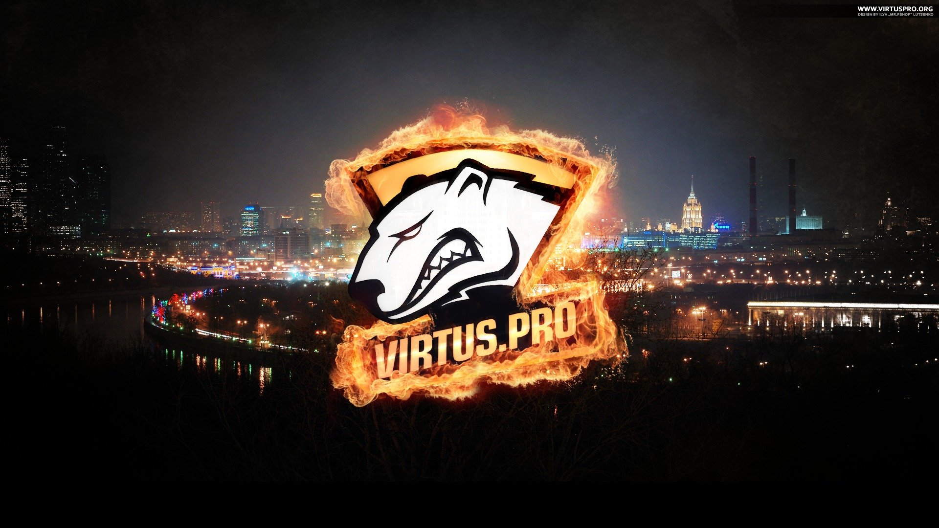 Logo niedźwiedzia polarnego na tle nocnego miasta