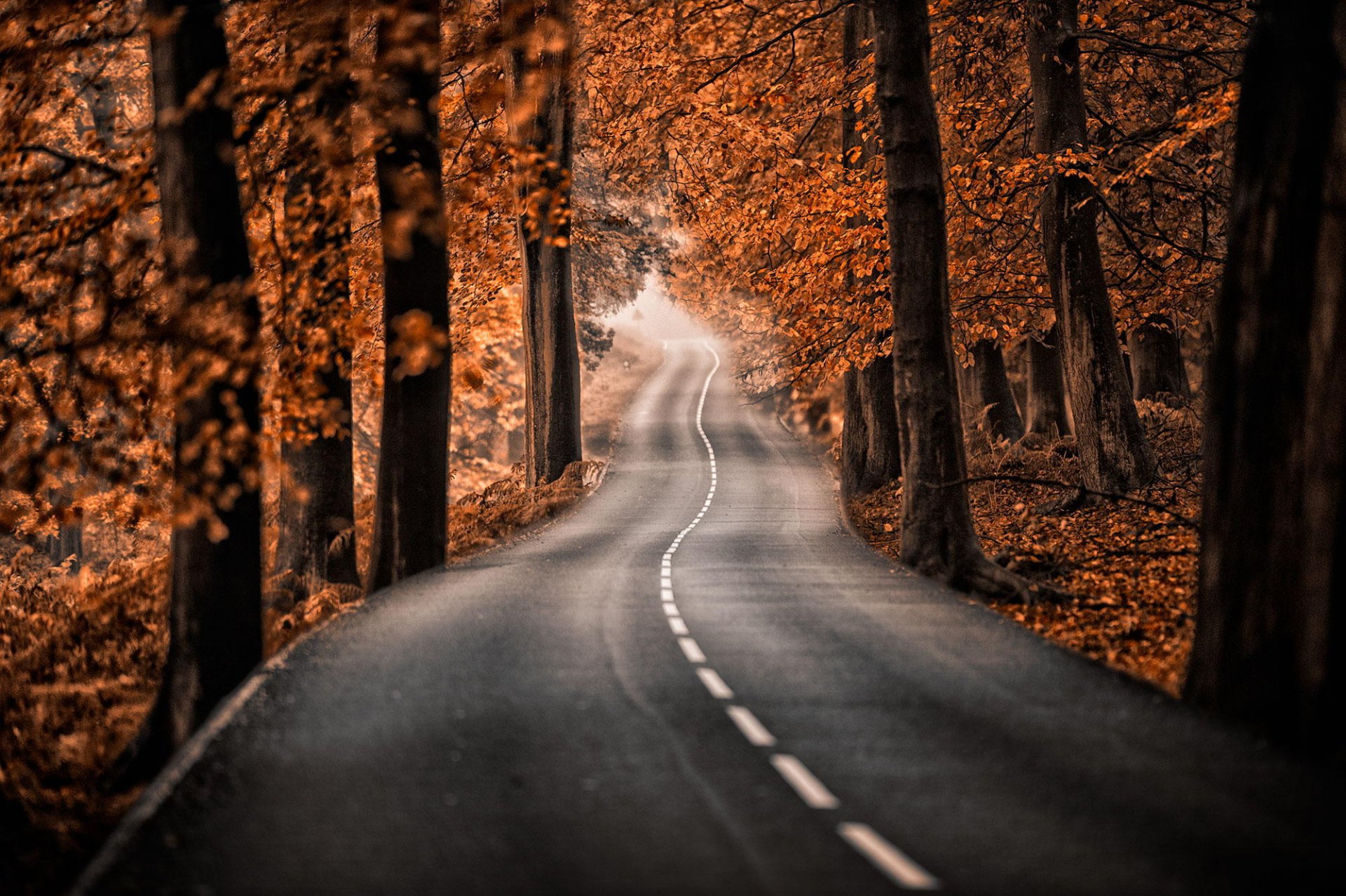 Droga i ogrodzenie oświetlone światłem słonecznym