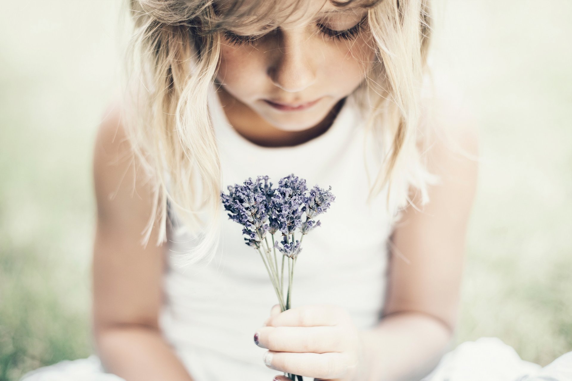 Mała dziewczynka z żółtym żonkilem w dłoni