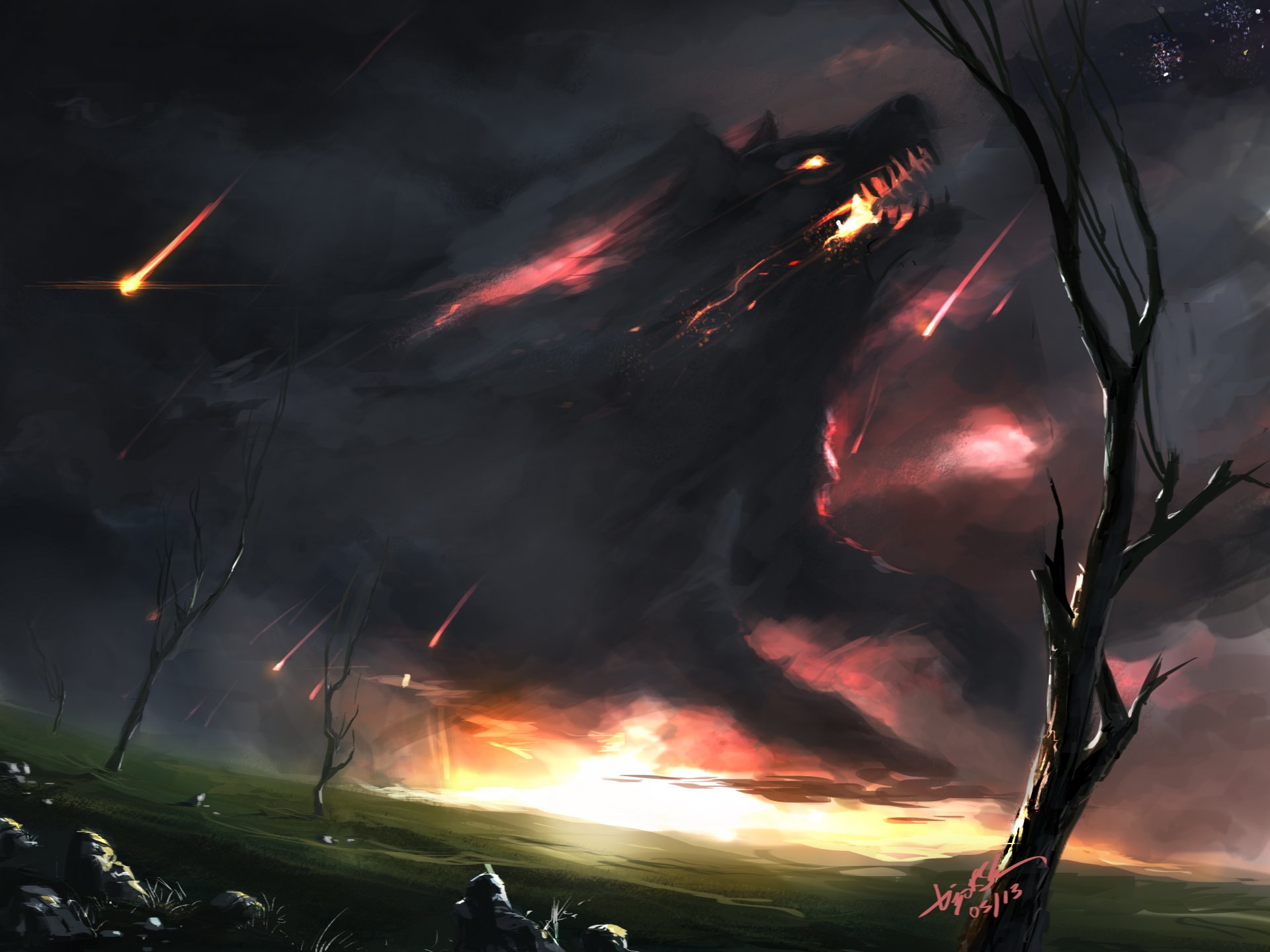 Art świecące pomarańczowe koło z sylwetką Smoka