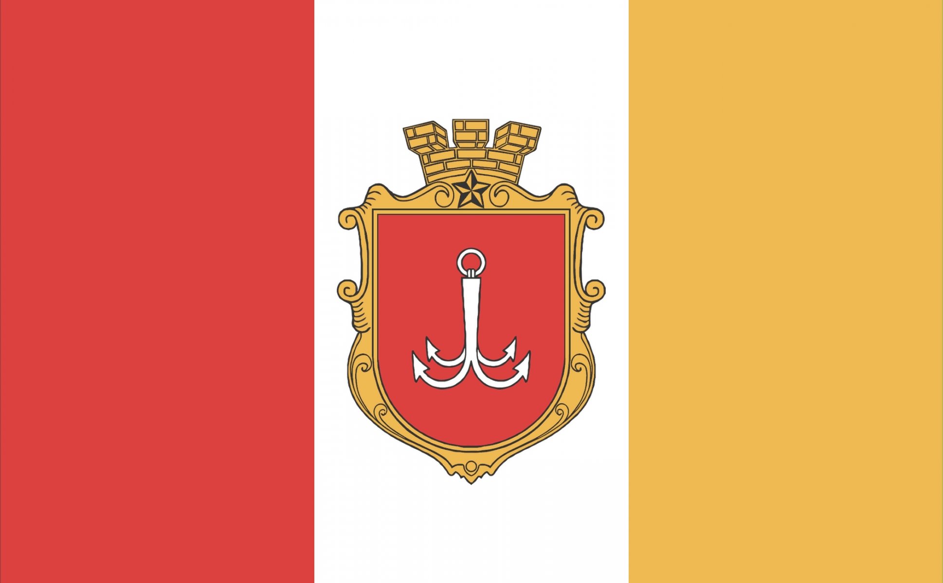 Herb miasta Odessa. Biała kotwica na czerwonym tle