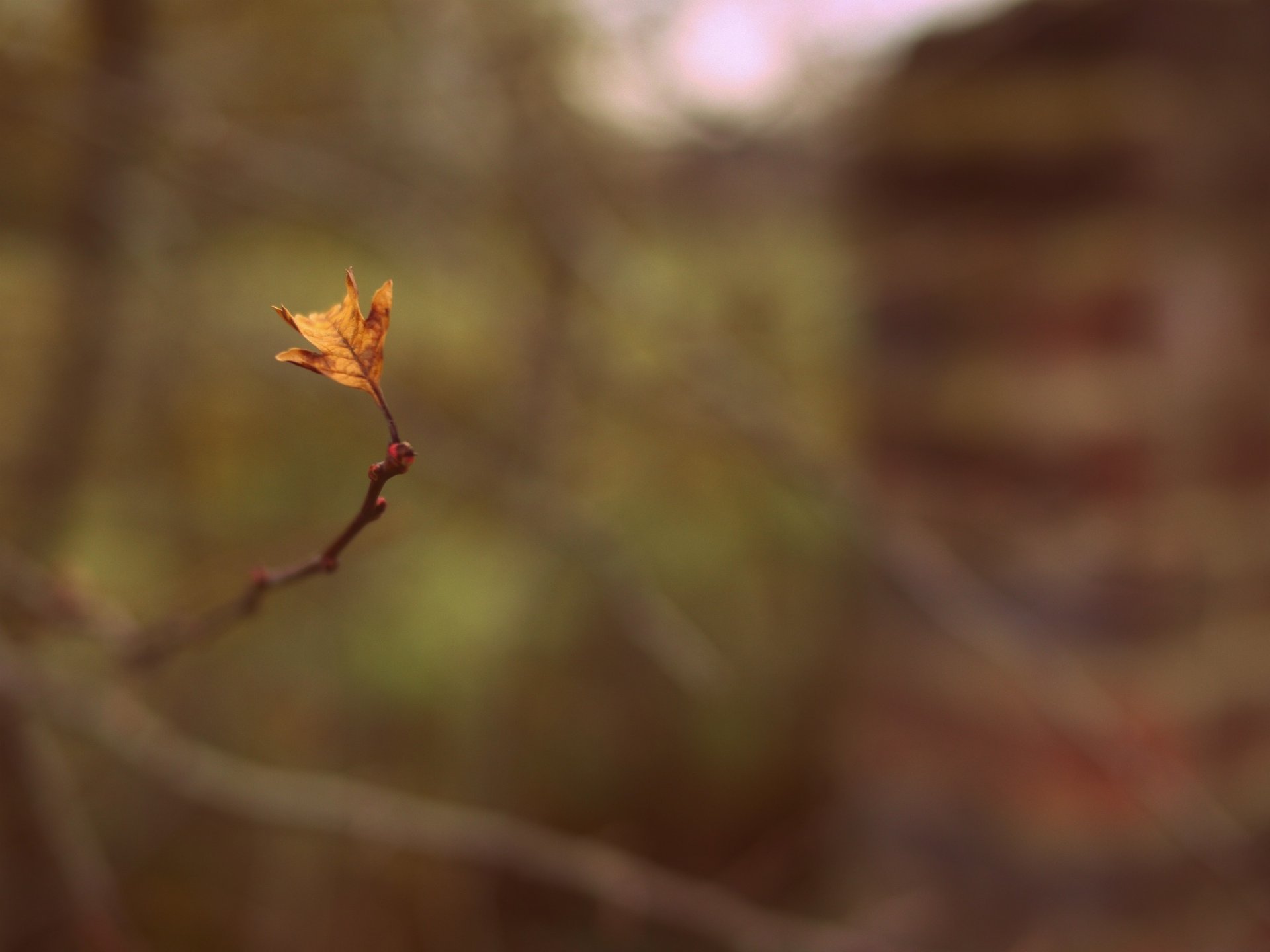 Jesienny żółty liść na gałęzi drzewa z rozmytym tłemJesienny żółty liść na gałęzi drzewa z rozmytym tłem