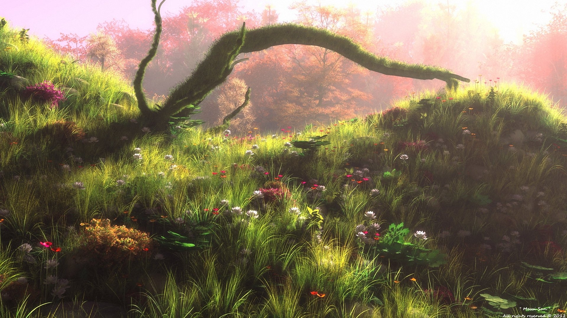 Krajobraz porannego lasu z jego cudownymi kwiatamiKrajobraz porannego lasu z jego cudownymi kwiatami
