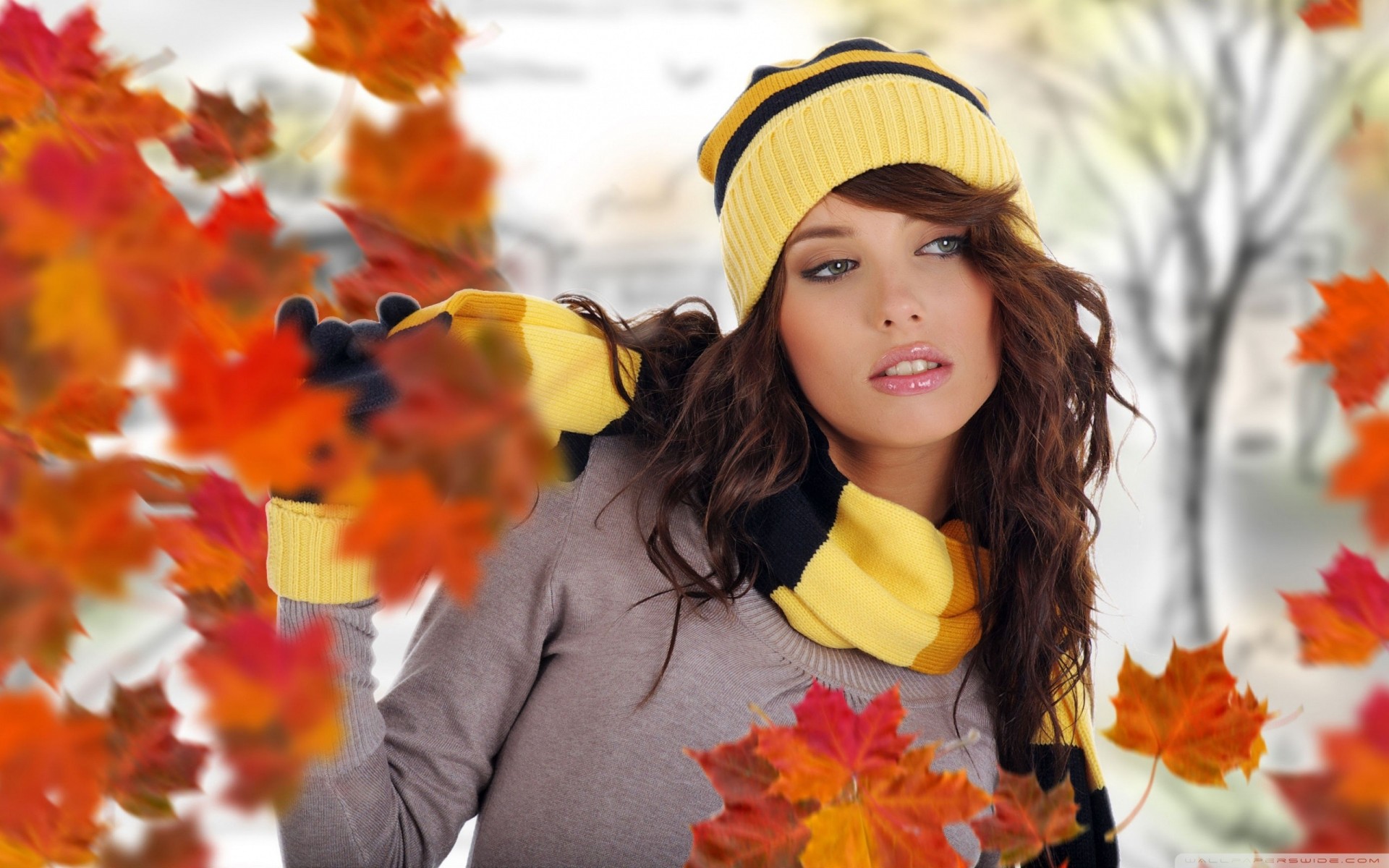 Jesienna sesja zdjęciowa dziewczyna i liście