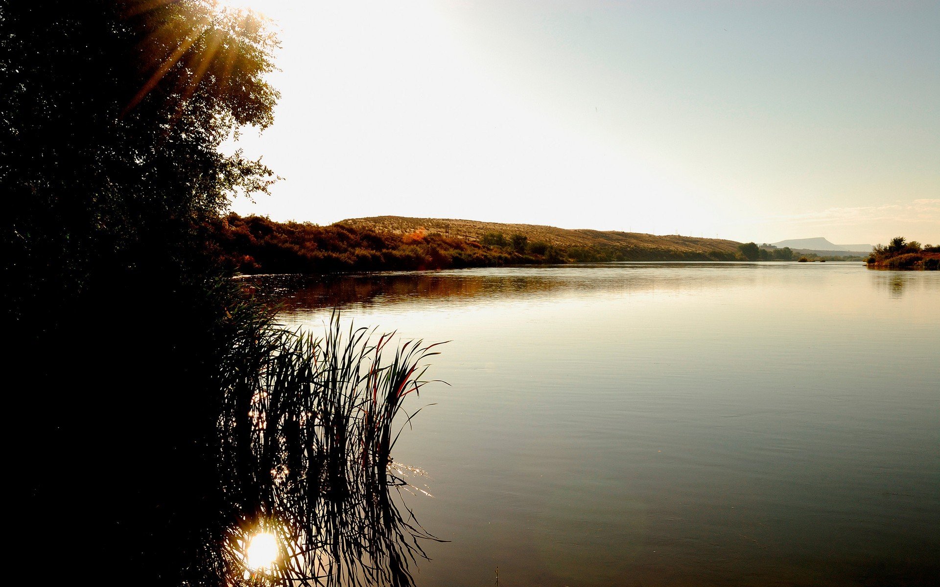 Jezioro z drzewami na brzegu z odbiciem nieba
