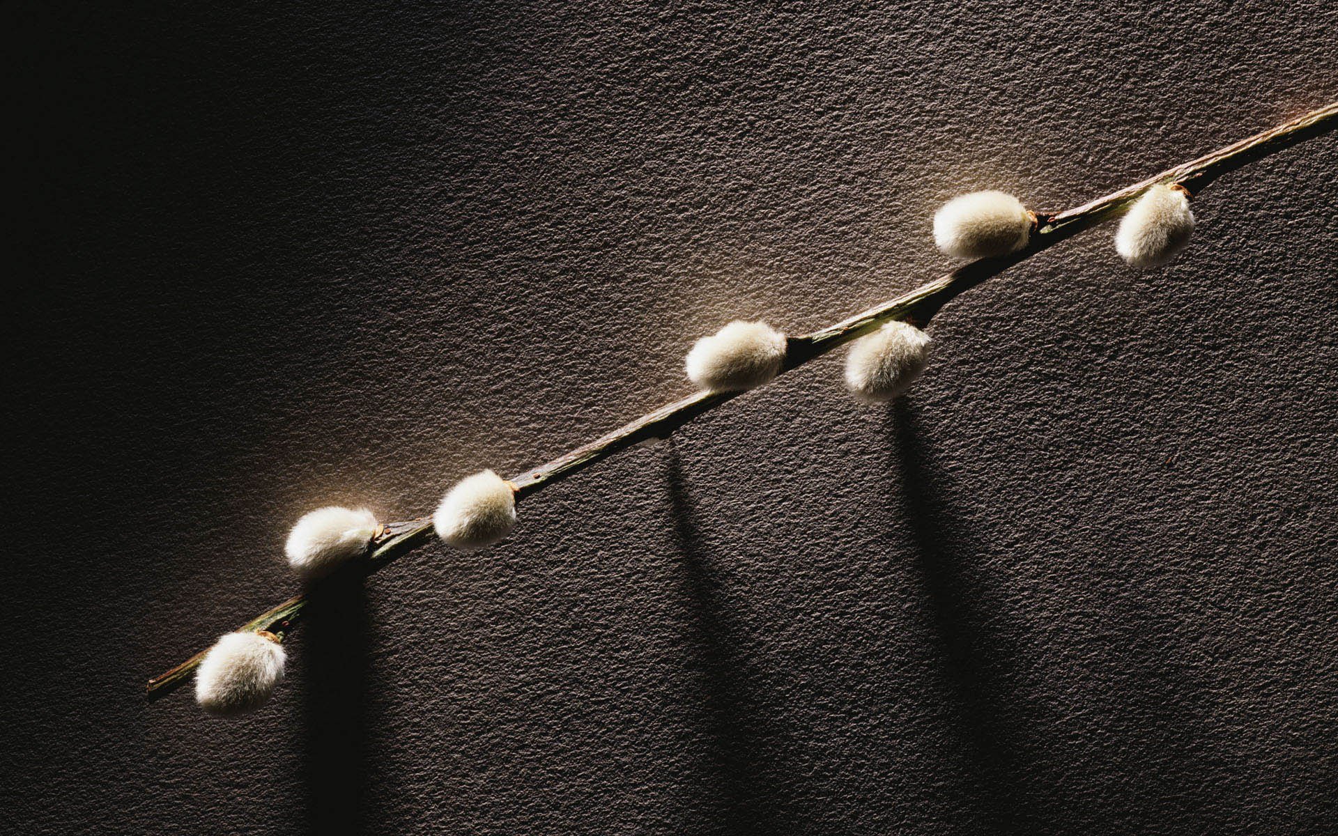 Kotek Stokrotka w pudełku w pobliżu doniczki