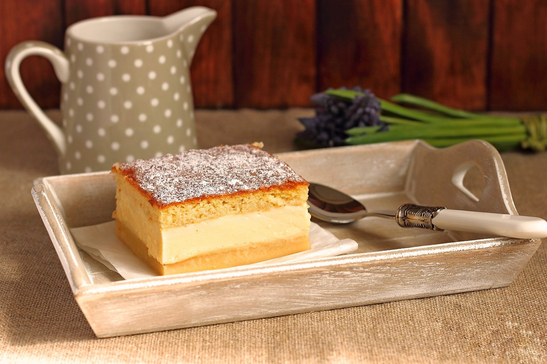 Martwa natura śniadania, gofry z kremem i jagodami oraz herbata rumiankowa