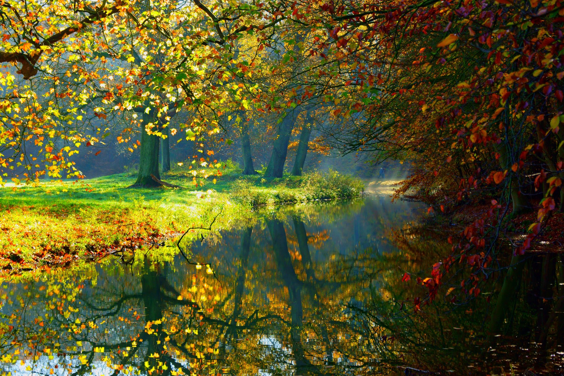 Letnie jezioro w lesie z drzewami