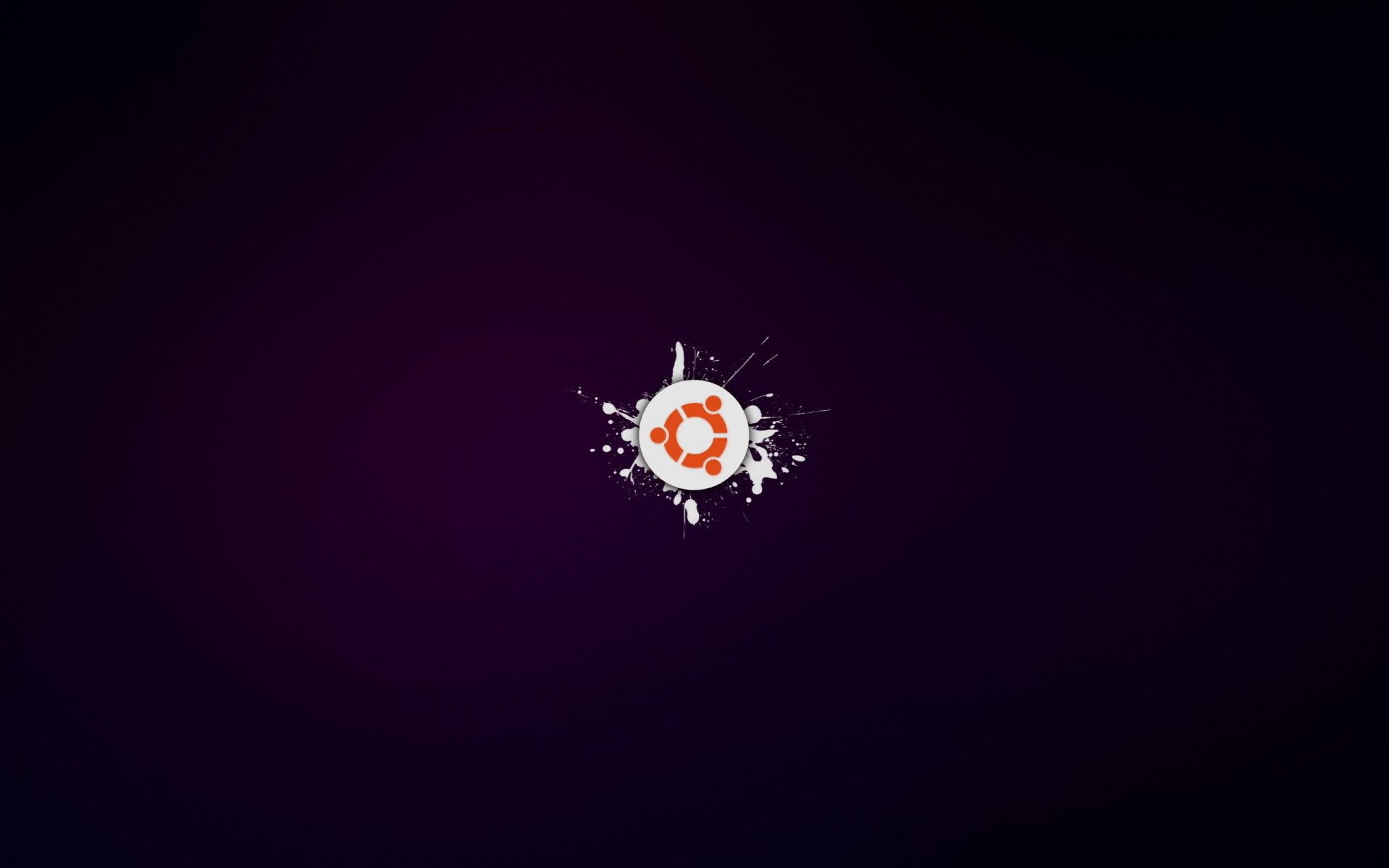 Minimalistyczne logo Ubuntu na fioletowym tle z rozpryskami