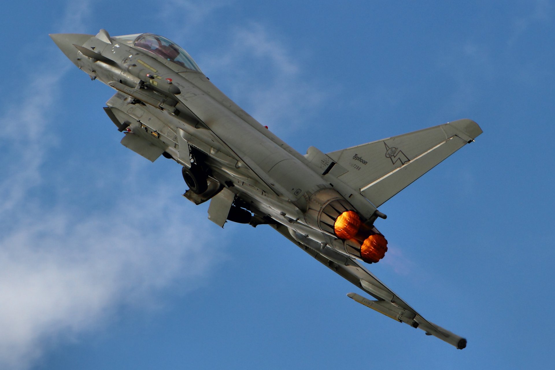 Na błękitnym niebie błyszczą srebrne skrzydła myśliwca
