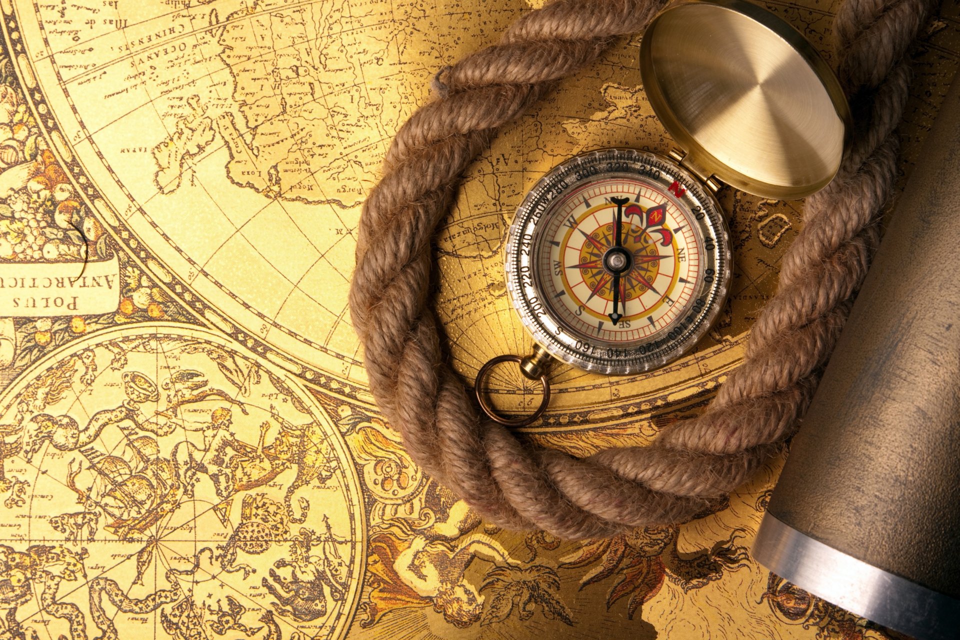 Kompas z liną na mapie