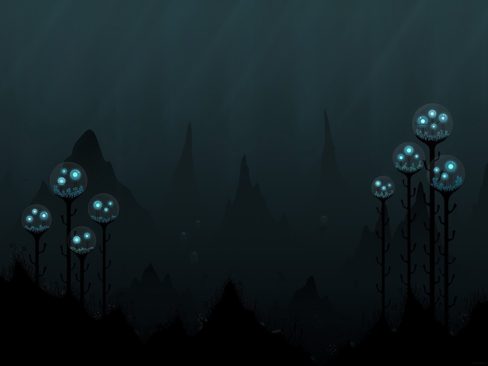 Neon meduzy na czarnym tle