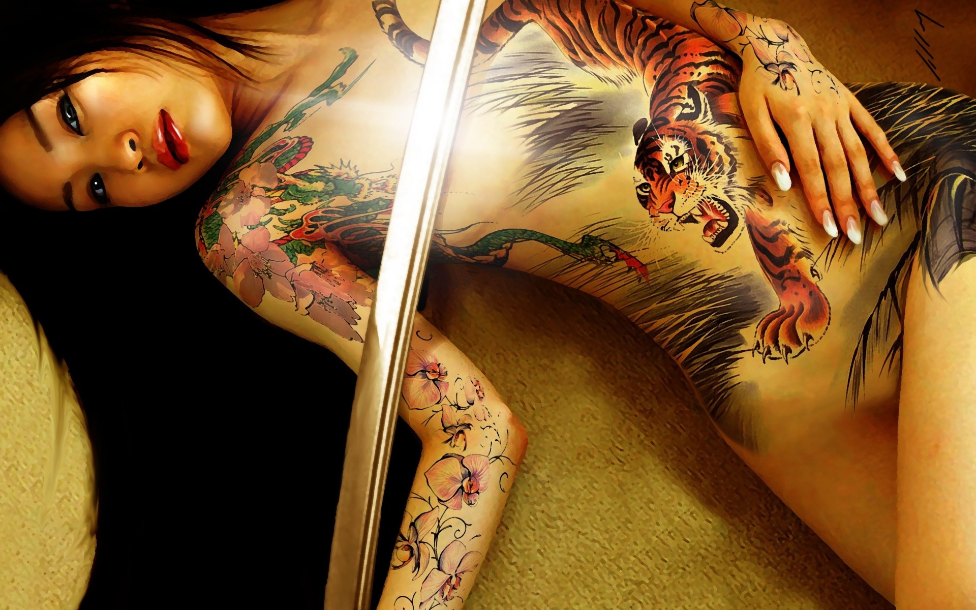 Dziewczyna z tatuażem tygrysa