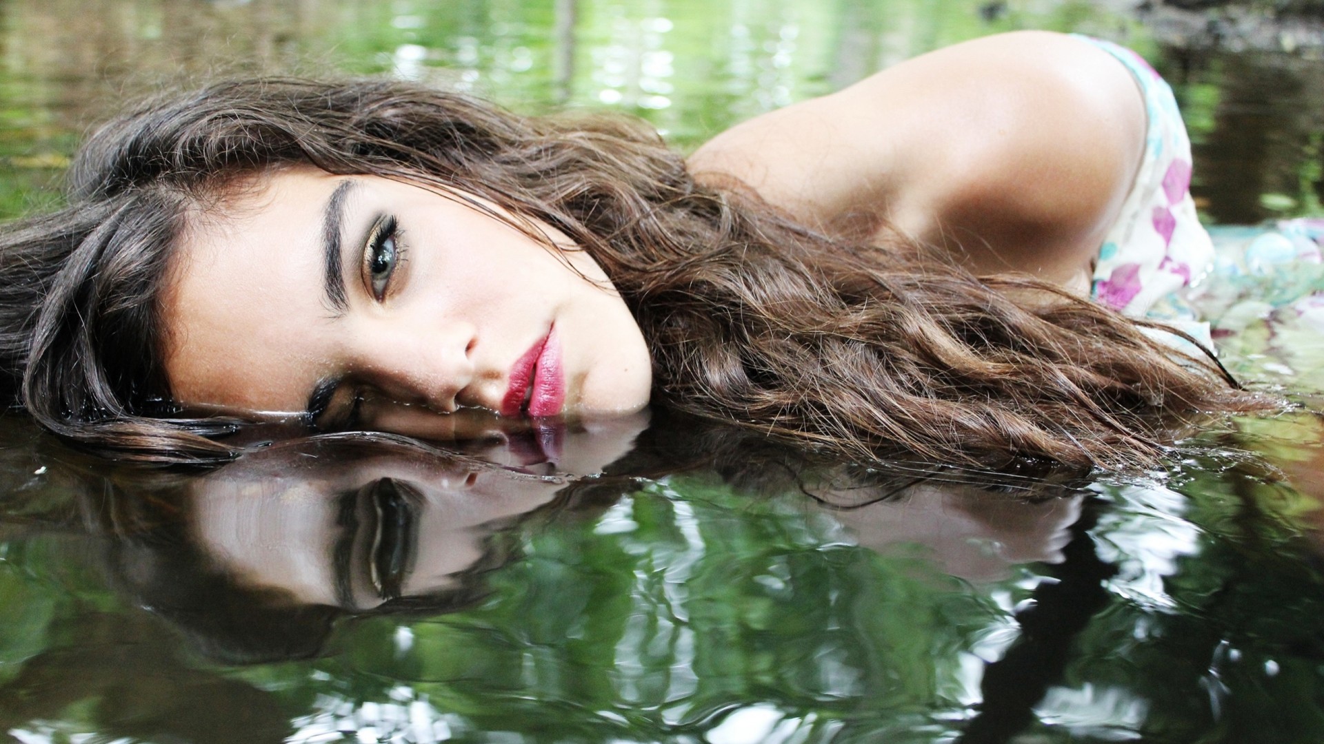 Dziewczyna Brunetka zanurza się w wodzie