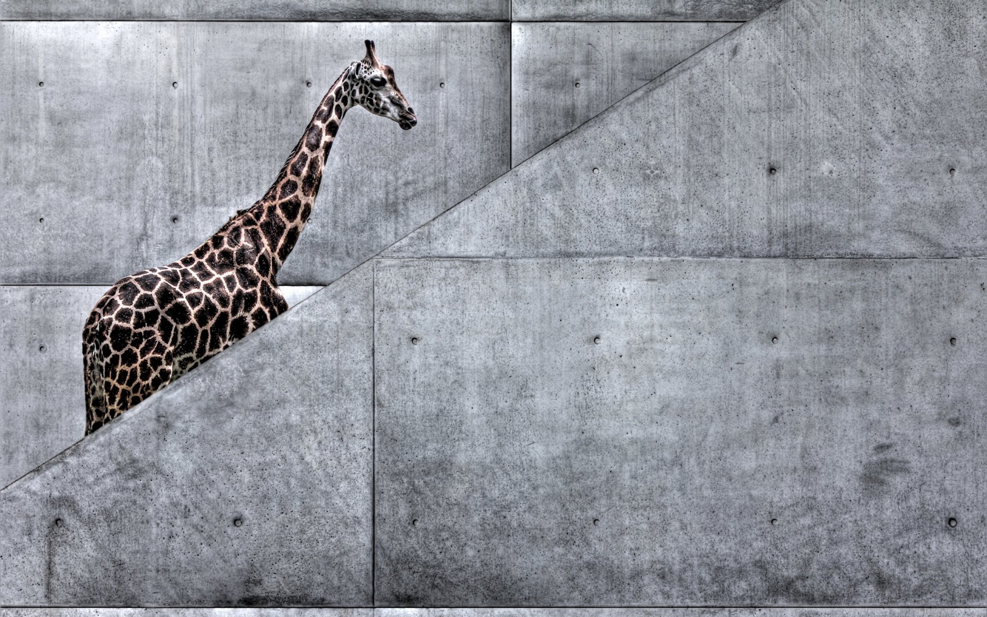 Szare schody artystyczne i żyrafa