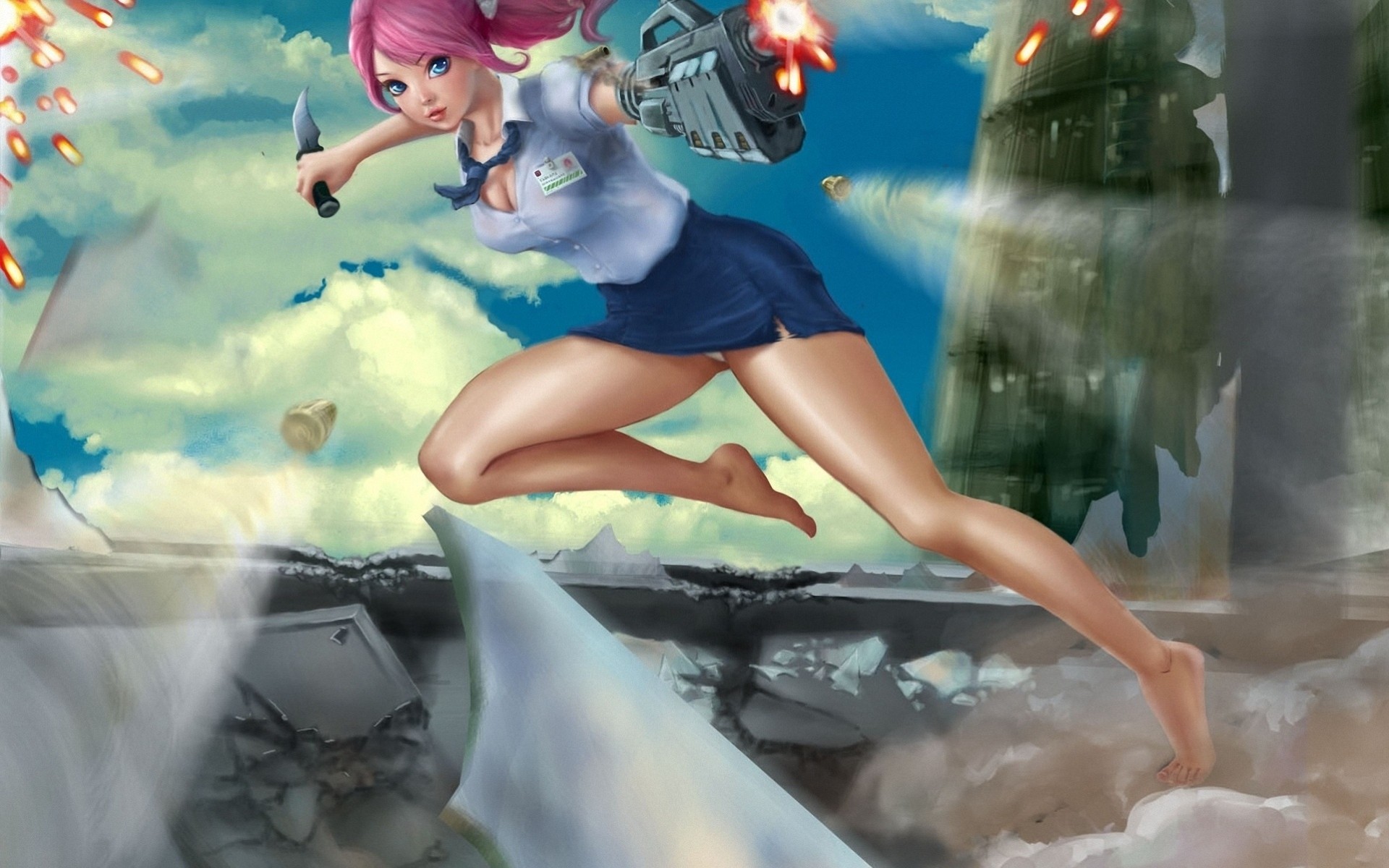Dziewczyna w kamuflażu z karabinem maszynowym