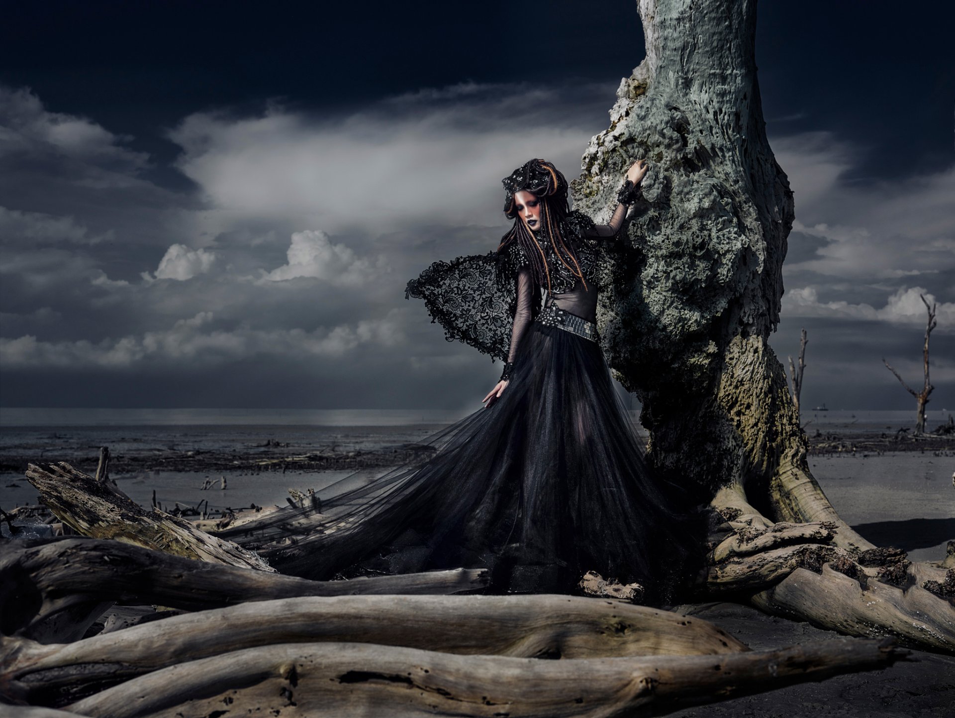 Dziewczyna w czerni ze skrzyżowanymi rękami