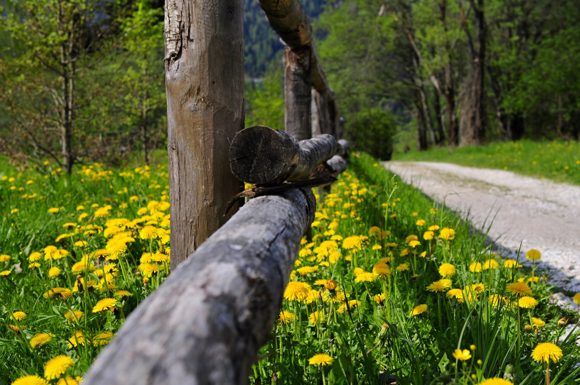Pole mniszka lekarskiego w pobliżu wiejskiej drogiPole mniszka lekarskiego w pobliżu wiejskiej drogi