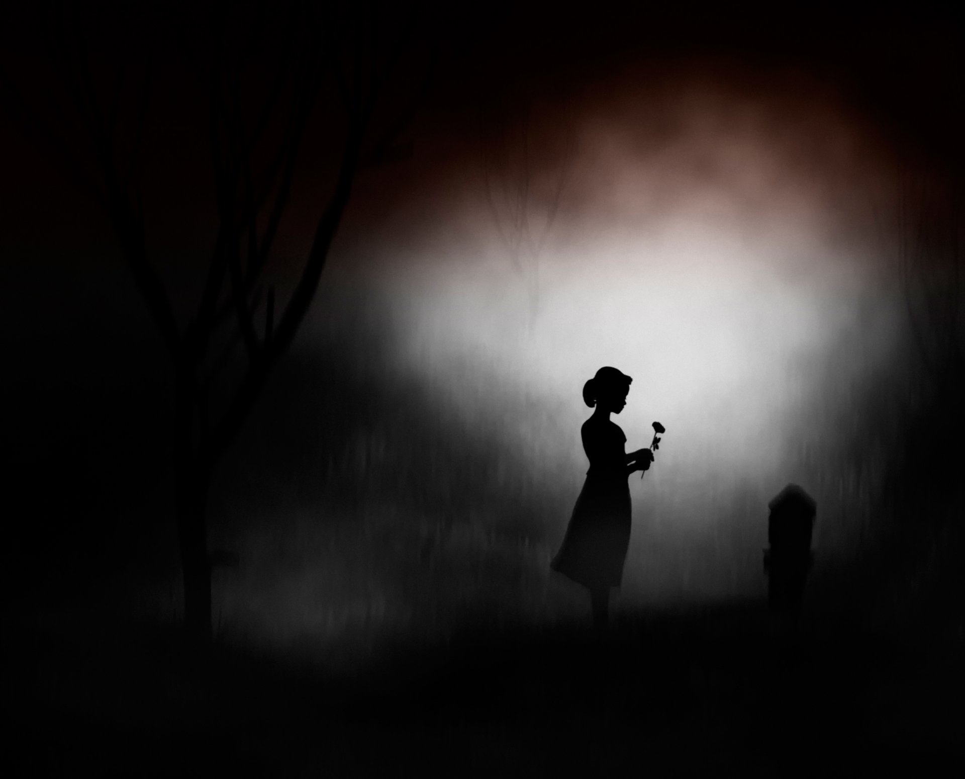 Nocna sylwetka gdzie dziewczyna stoi nad nagrobkiem