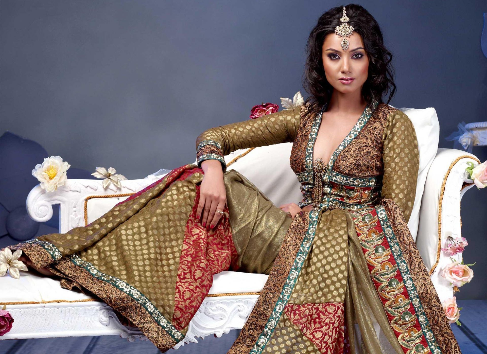 Marzycielska orientalna kobieta w czarnej sukienceMarzycielska orientalna kobieta w czarnej sukience
