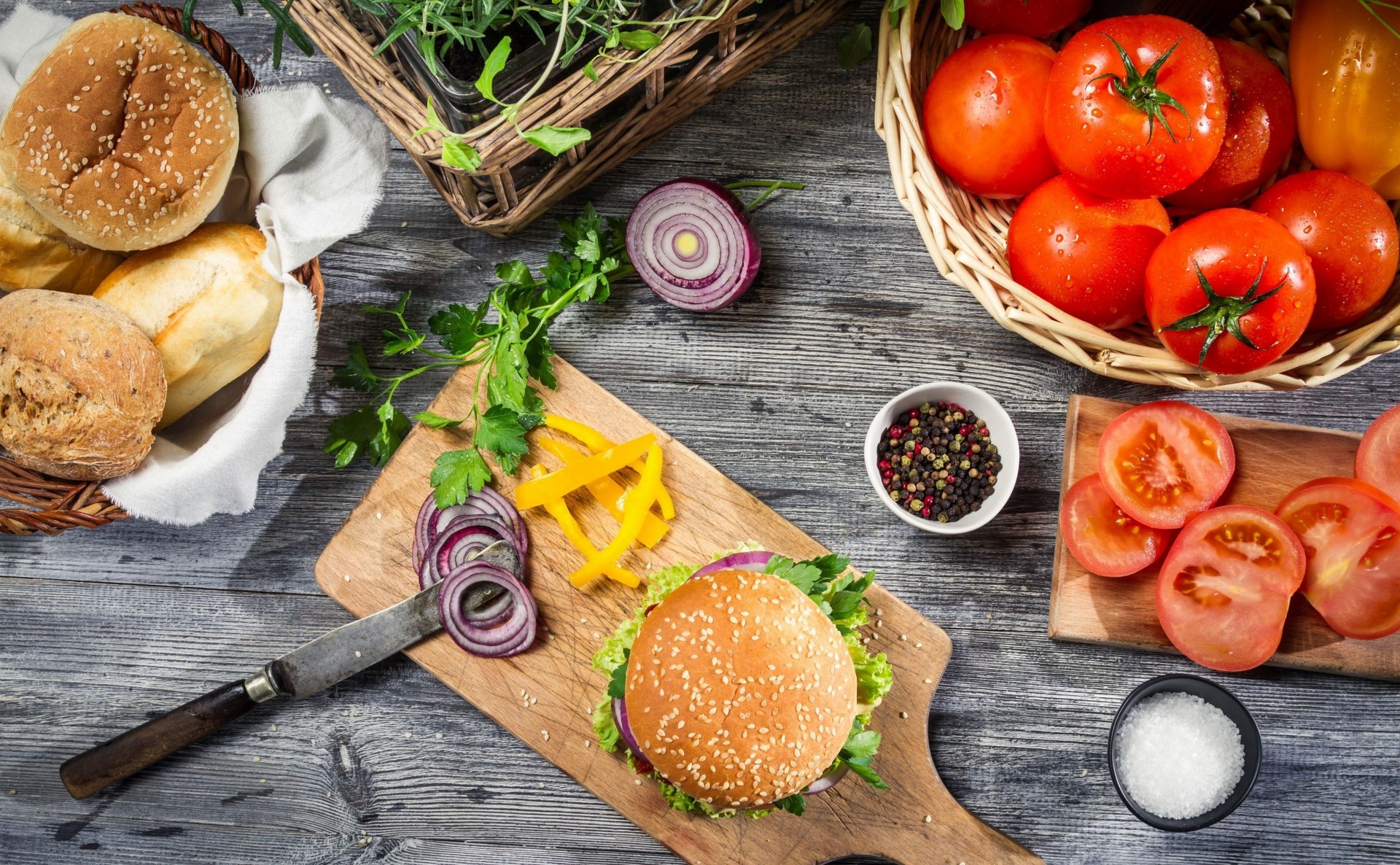 Połówki cebuli, pomidorów i drewniana miska pieczarek w pobliżu stojaka na pizzęPołówki cebuli, pomidorów i drewniana miska pieczarek w pobliżu stojaka na pizzę