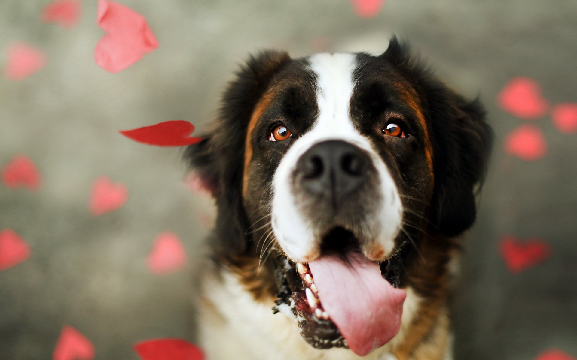 Pies z czerwoną różą w zębach