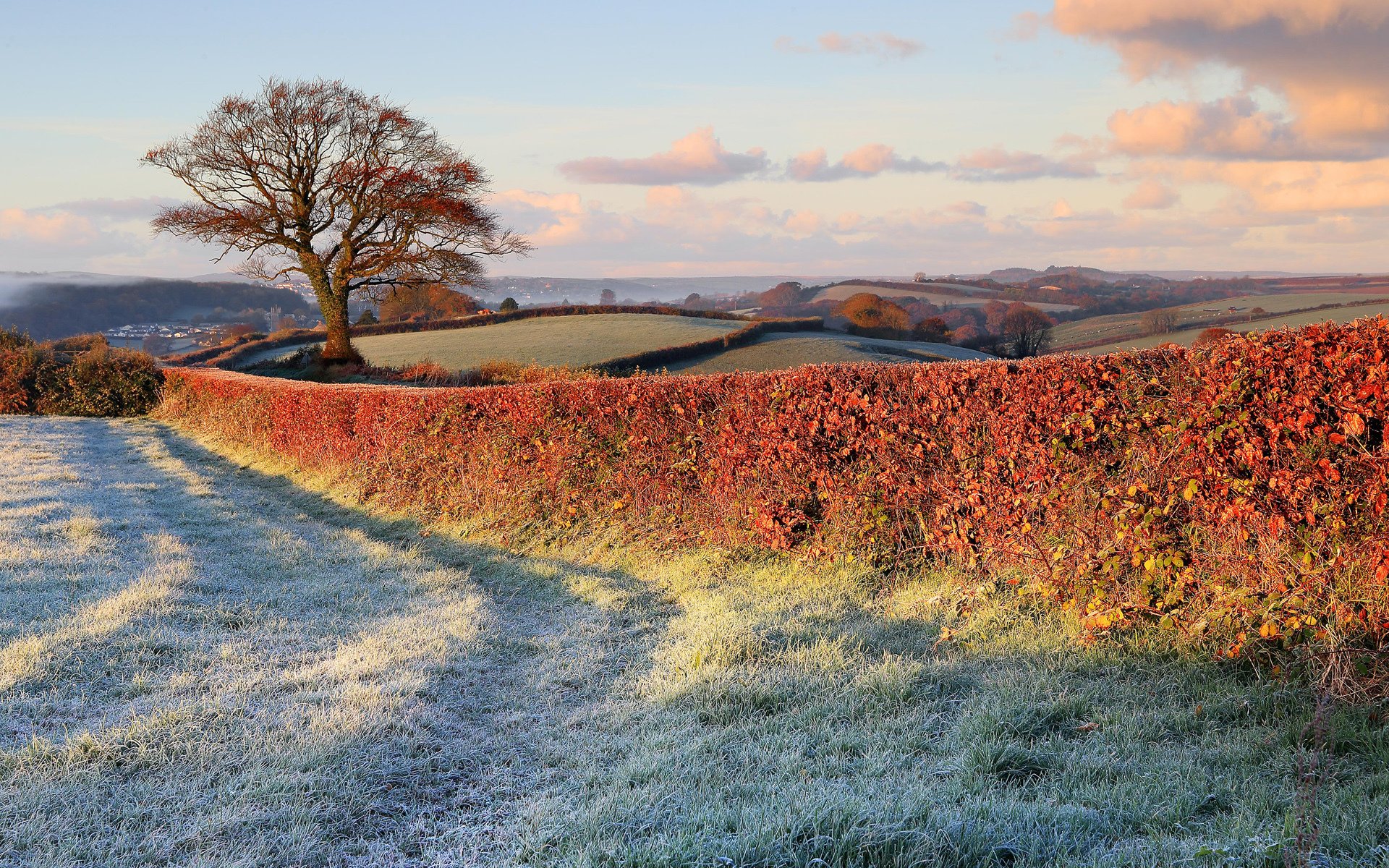 Góry Bawarii z domem . Pola z lasami i wzgórzami