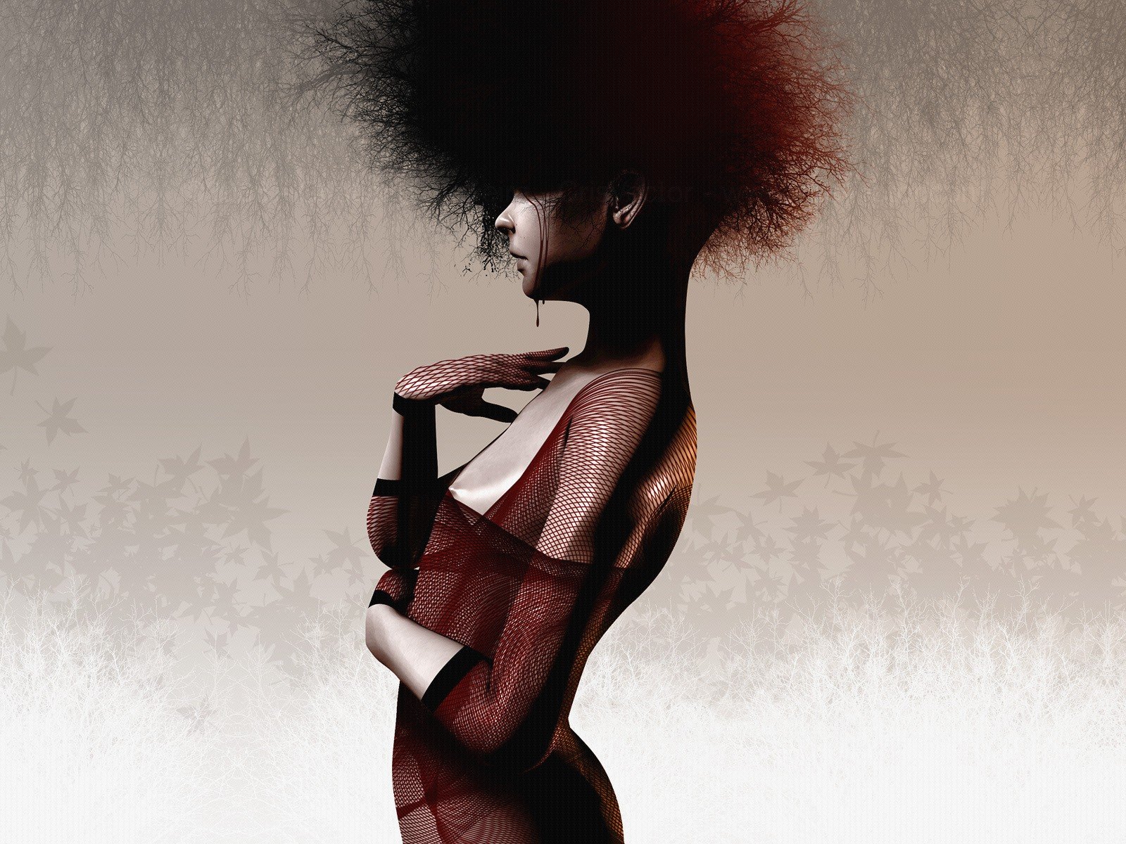 Kobieta z długimi, kręconymi włosami w promieniach słońca