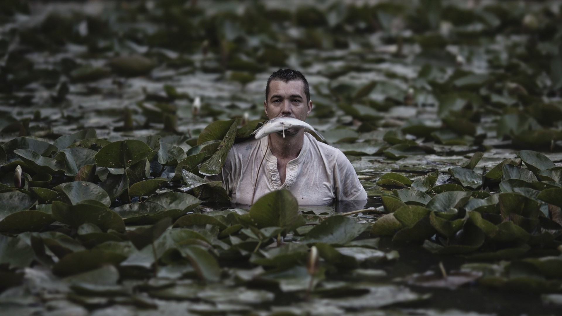 Zdjęcie w stylu minimalizmu dla systemu windows 8: ryba z gruszkami na niebieskim tleZdjęcie w stylu minimalizmu dla systemu Windows 8: ryba z gruszkami na niebieskim tle
