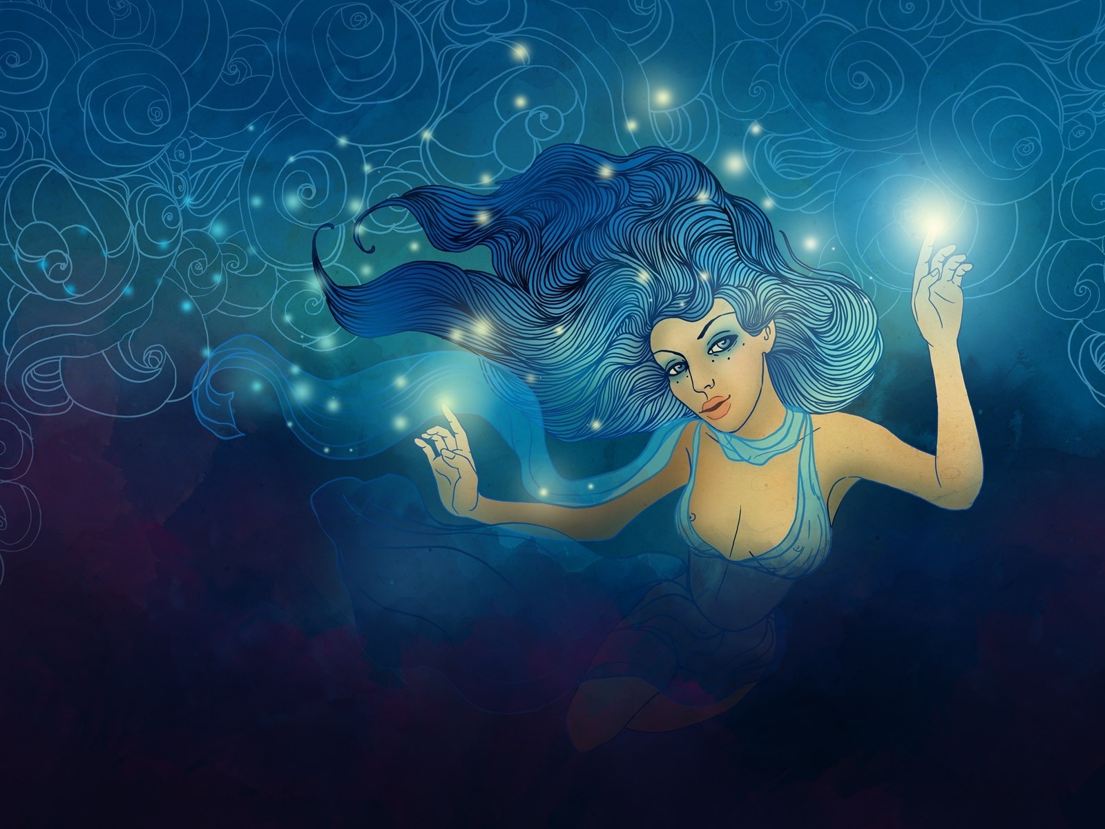 Rysunek dziewczyny z niebieskimi włosami