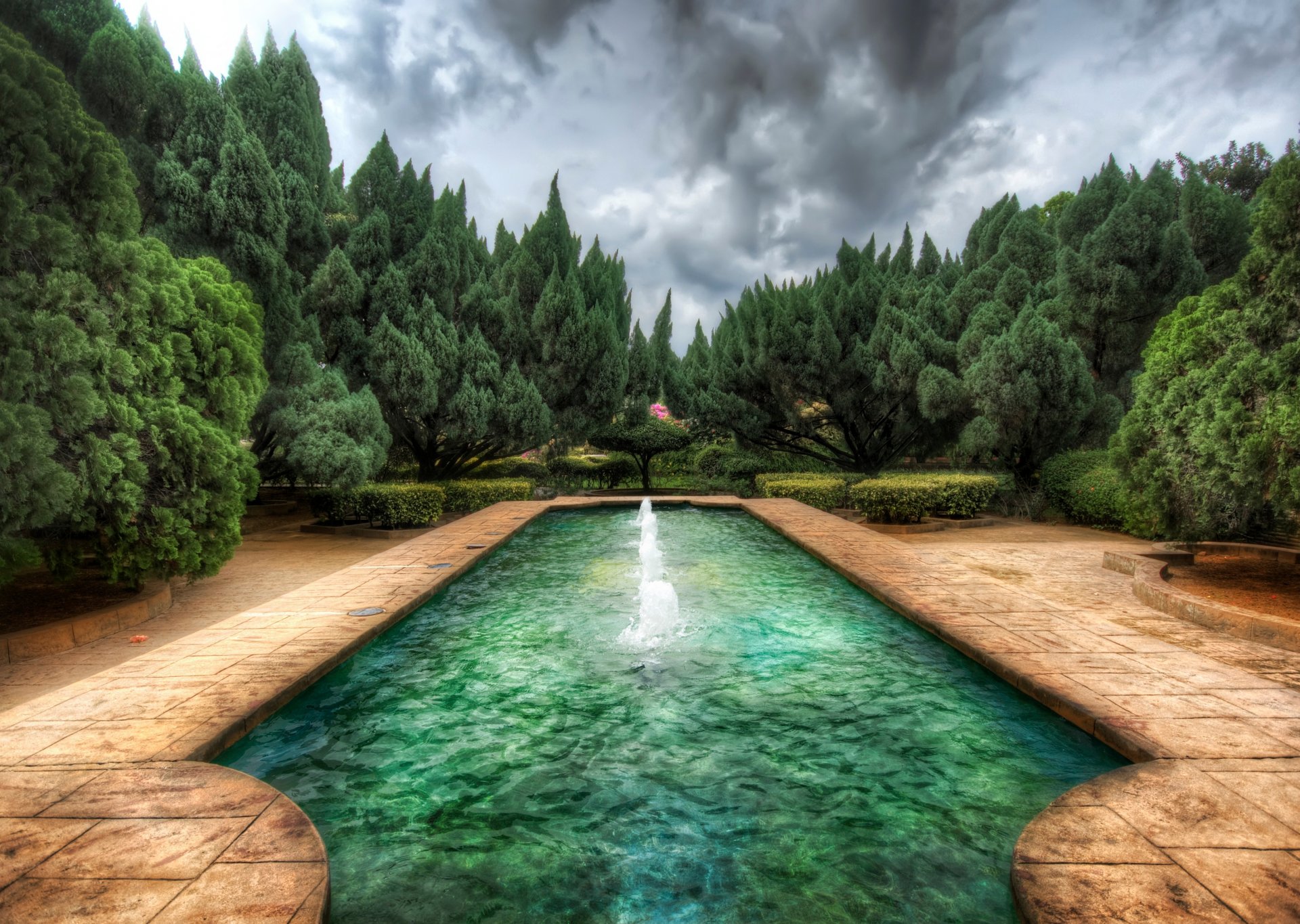 Niebieski basen ozdobiony kafelkami w egipskim wzorzeNiebieski basen ozdobiony kafelkami w egipskim wzorze