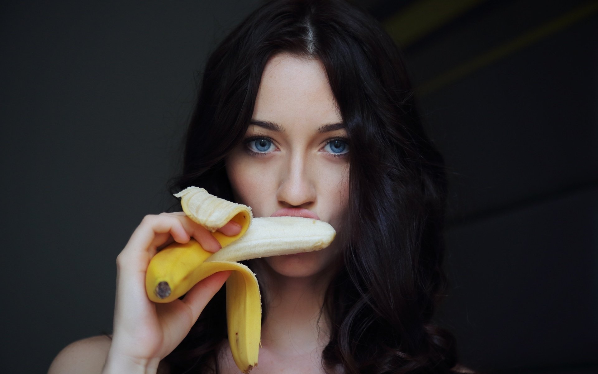 Brunetka w czerwonych słuchawkach w zimowym lesie