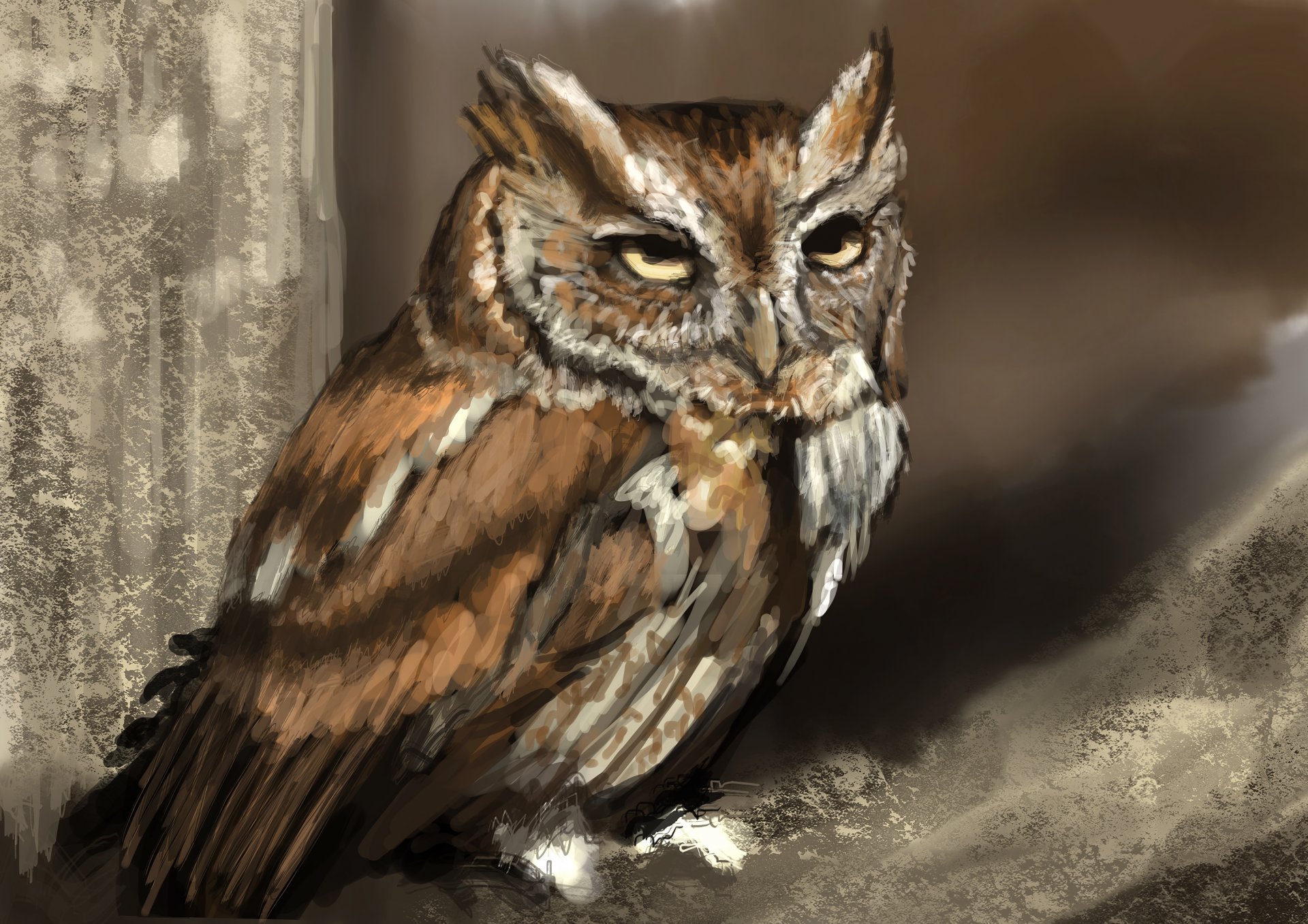 Sztuka dziewczyny, która siedzi na tronie obok sowySztuka dziewczyny, która siedzi na tronie obok sowy