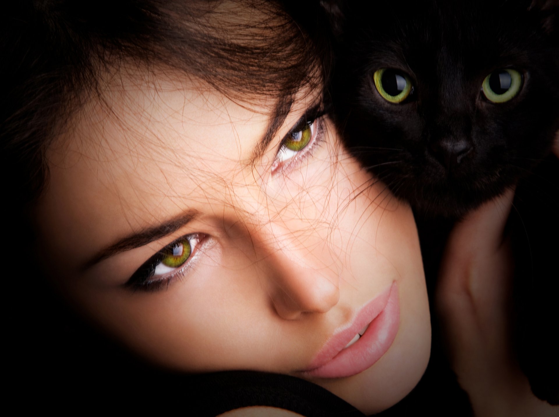 Zielonooka dziewczyna z zielonookim czarnym kotem