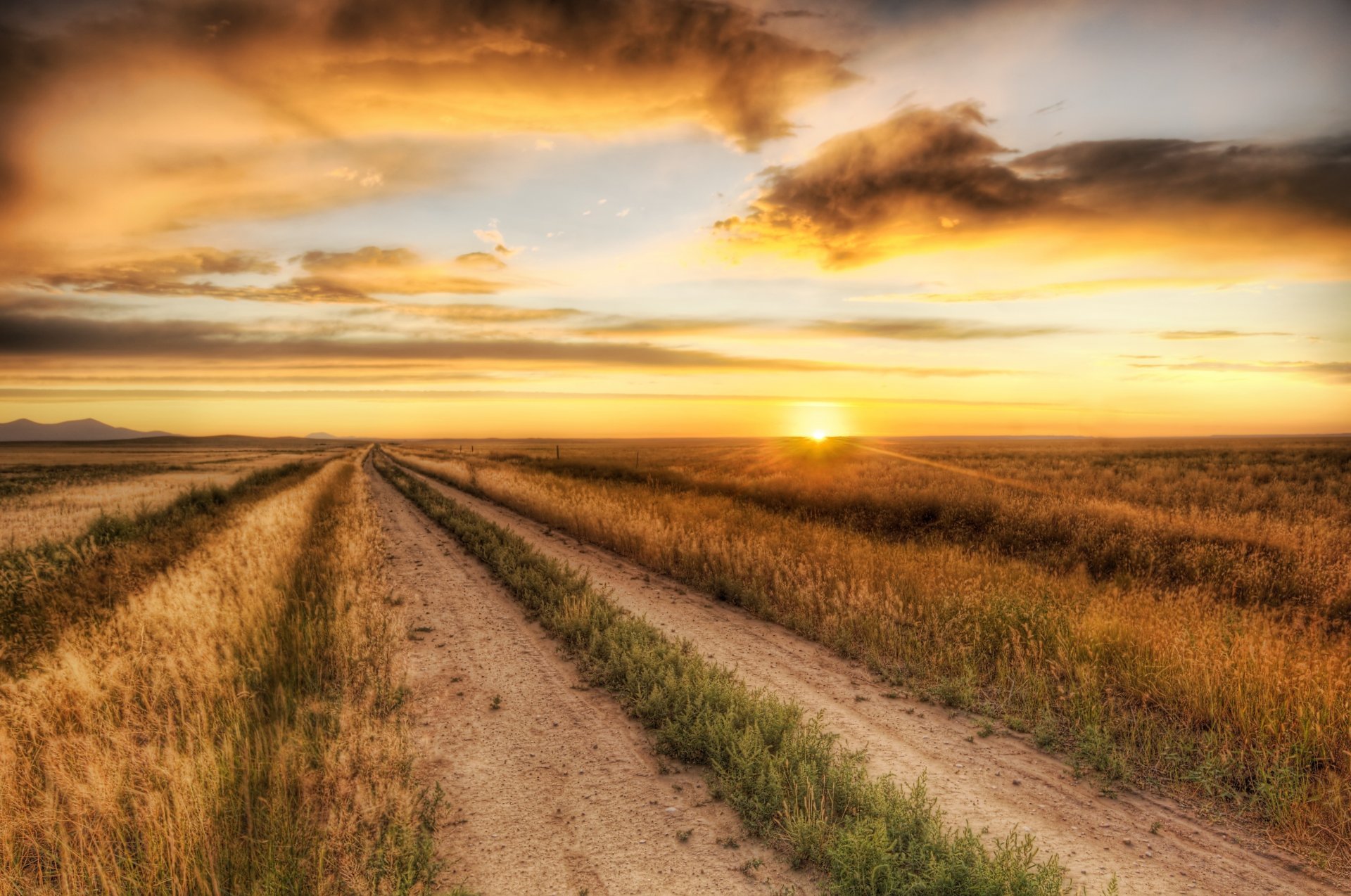 Zachód słońca w polu. pelnoekranowy. szerokoformatowy