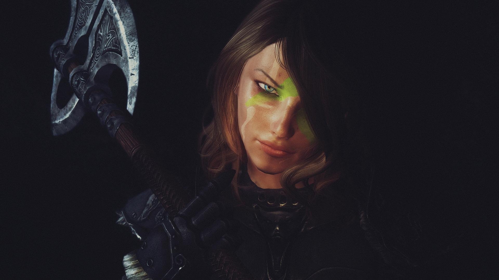 Renderowanie dziewczyny z siekierą na czarnym tle