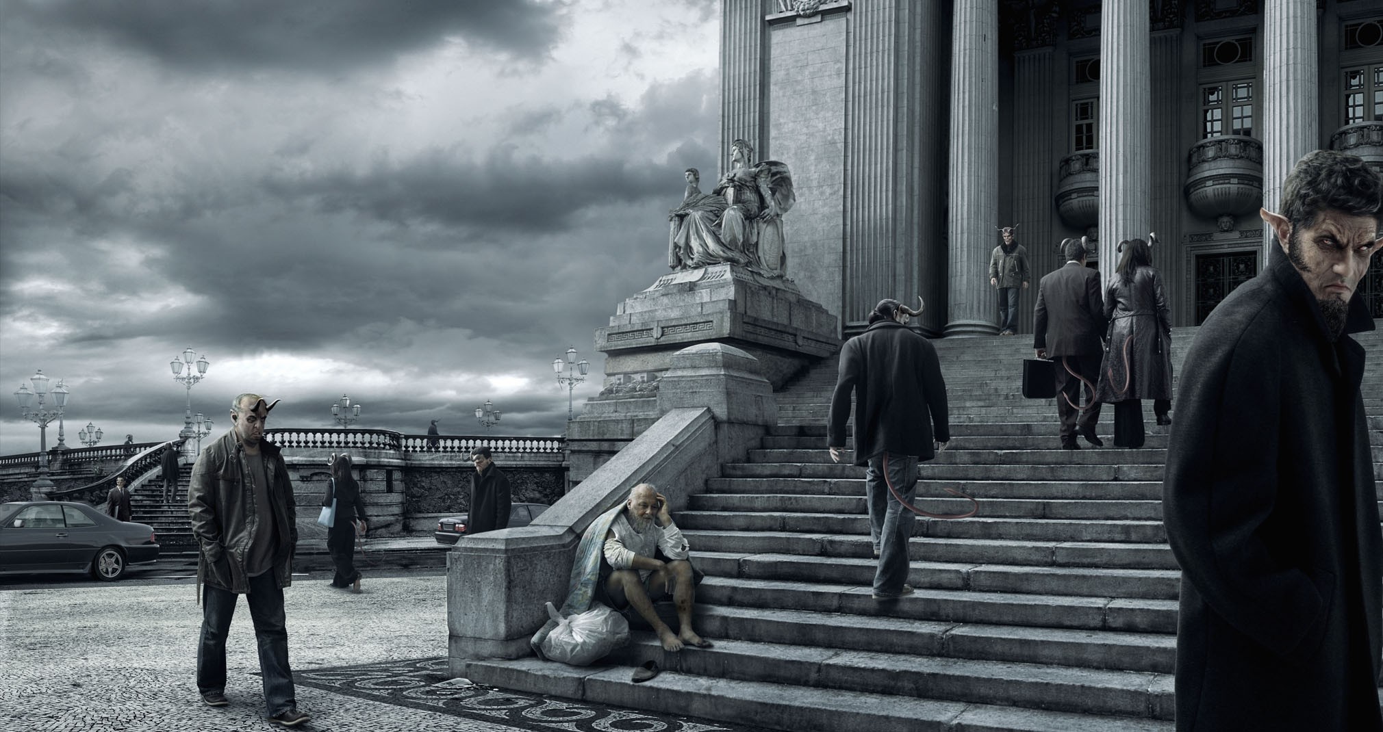 Pejzaż wielkiego miasta z wieżowcami w odbiciu powierzchni wody