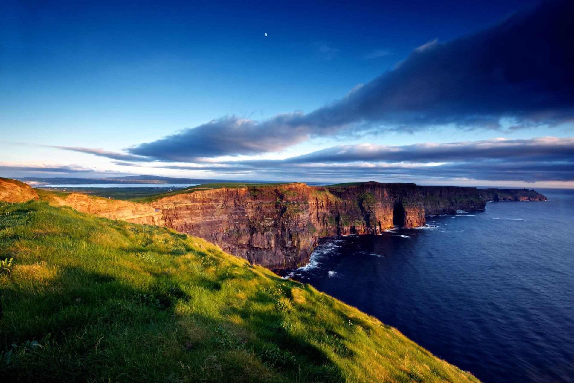 Fantastyczny świat przyszłości. wysoki budynek, a przed nim spadające wodospadyFantastyczny świat przyszłości. Wysoki budynek, a przed nim spadające wodospady