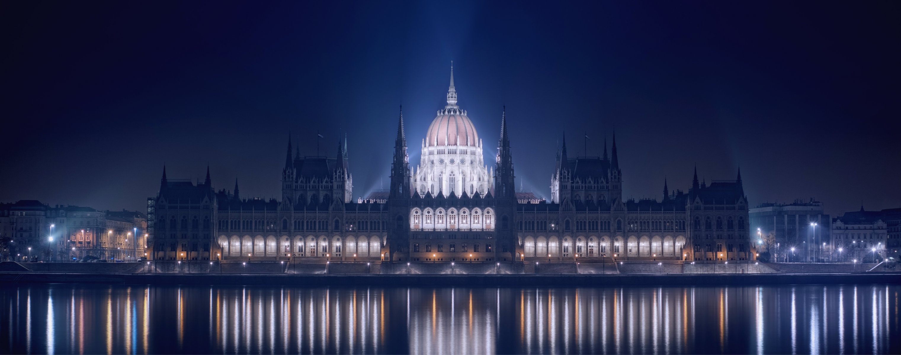 Symetria i Parlament. Ścisła proporcja w światłach i z oświetleniem