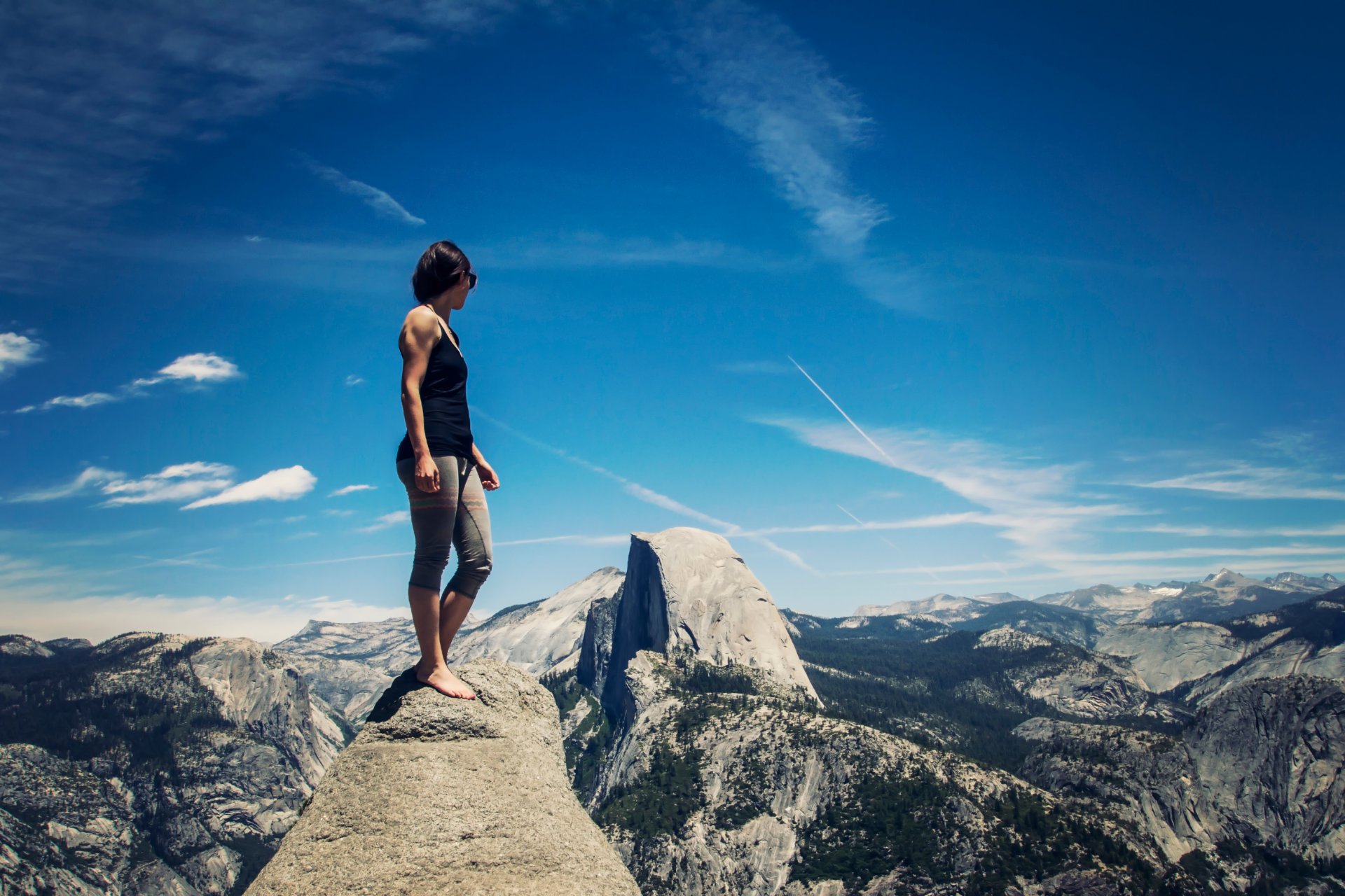 Dziewczyna stojąca nad urwiskiem w malowniczej dolinie
