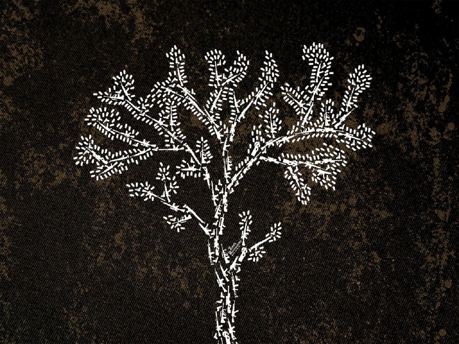 Czarna sylwetka drzewa na szarym tle