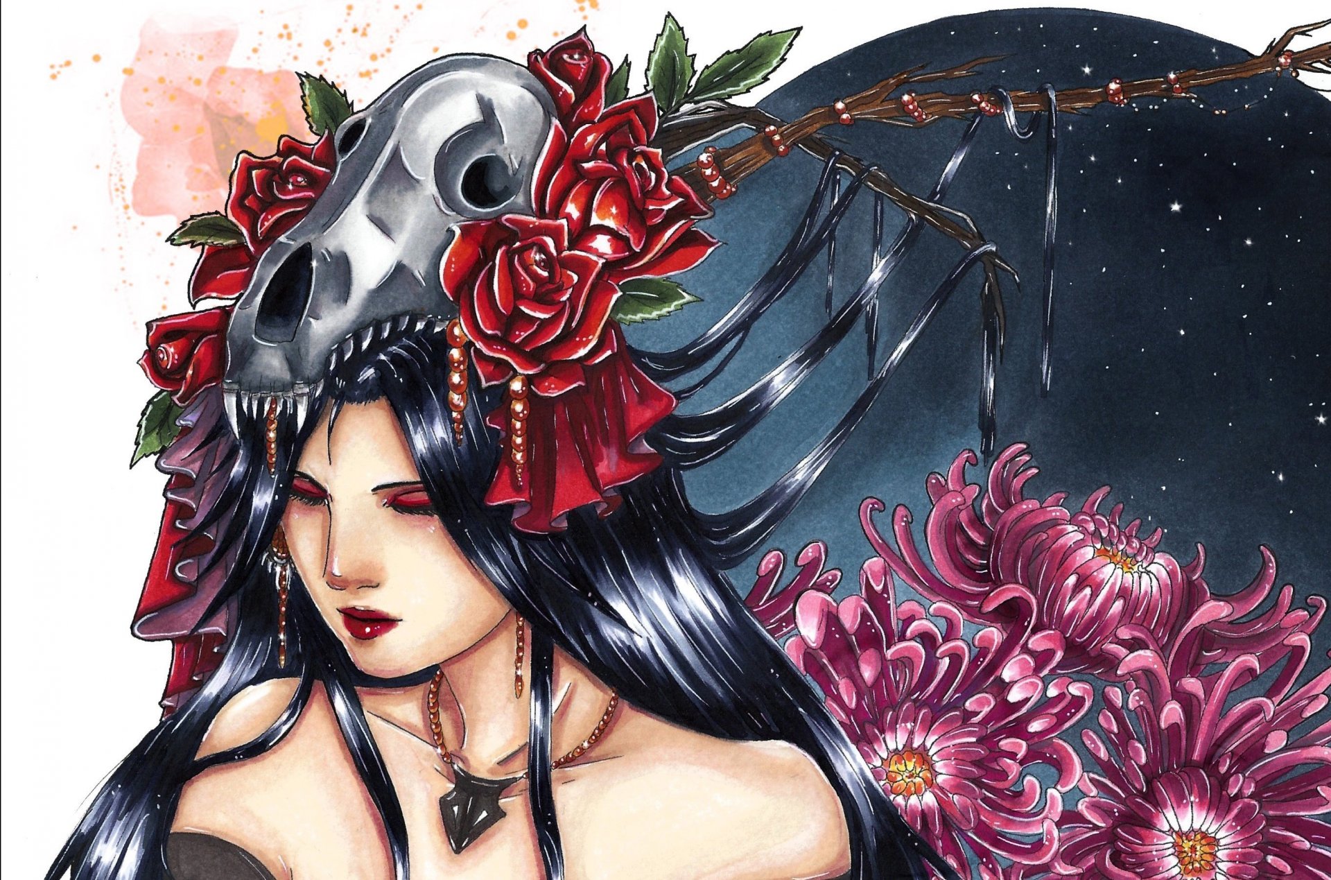 Wnętrze pokoju okultystycznego z czaszką i świecami